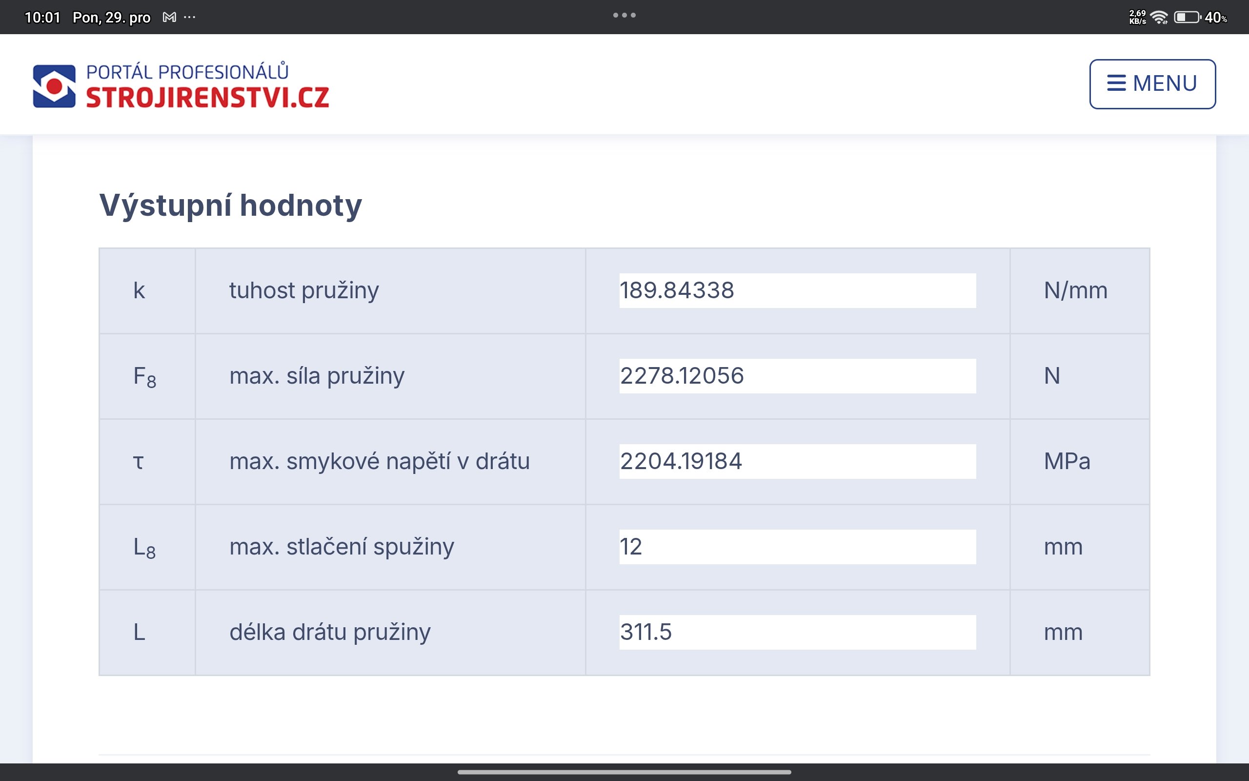 Pro 4ks závitovky M10 by šly použít tyto 4 pružiny. Když se dotáhnou všechny o 4mm je tam tlak cca 300kg a při zvětšení Bat. o 1,4mm který máme zatím změřený se tlak zvedne o 105kg i kdyby se časem stárnutím zvětšila o 5mm síla se zvedne o 380kg a to je stále v normě 🙂