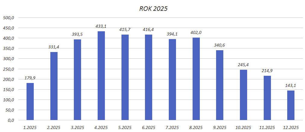 AC výroba cca 3368 kWh z toho 2216 kWh pre spotrebiče a 1151 kWh do ohrevu TUV.