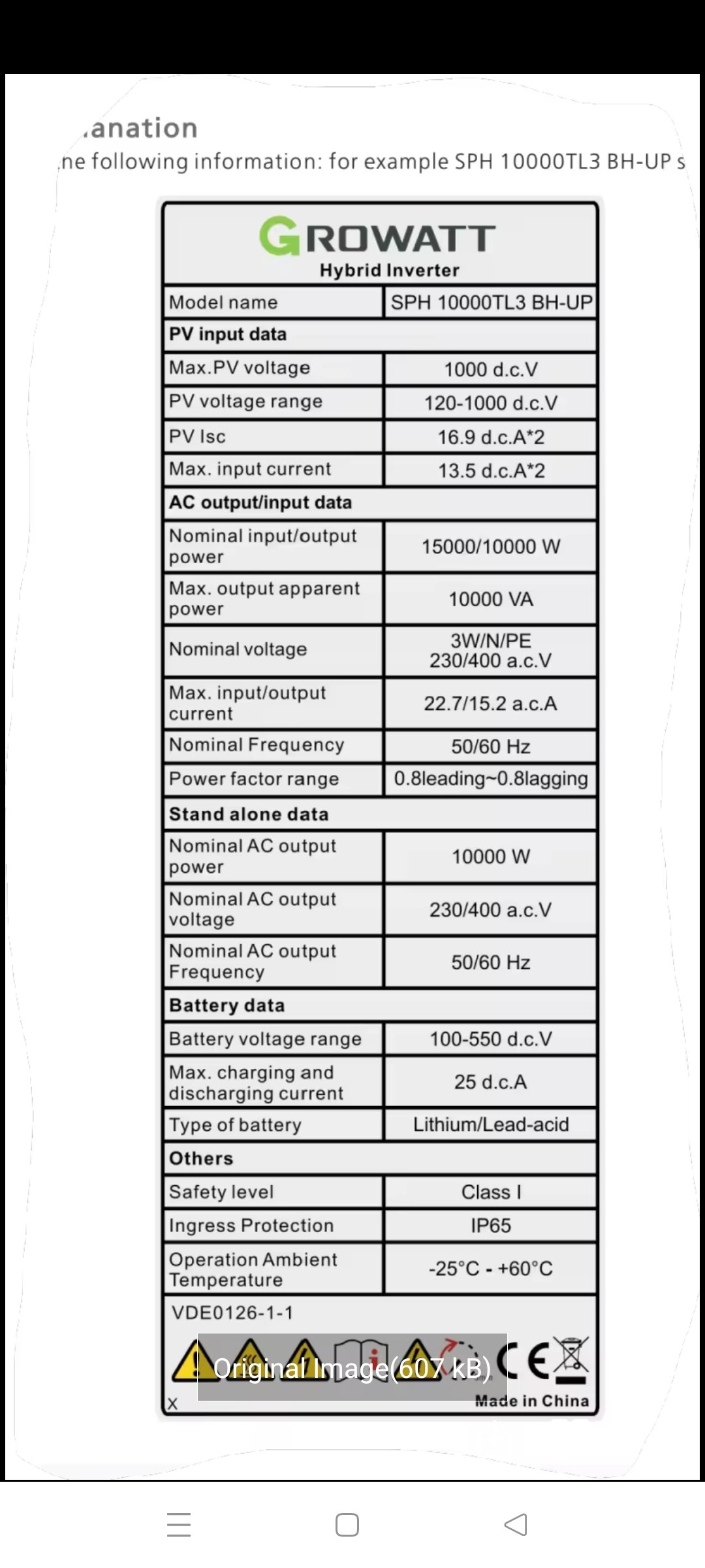 Přikládám štítek našeho střídače.