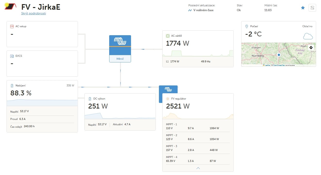 7,3kWp (JV - 3,7kWp, J - 1,2kWp, SZ - 2,4kWp) - Must PV1800 VHM 5548, Calb 16 x 180Ah
