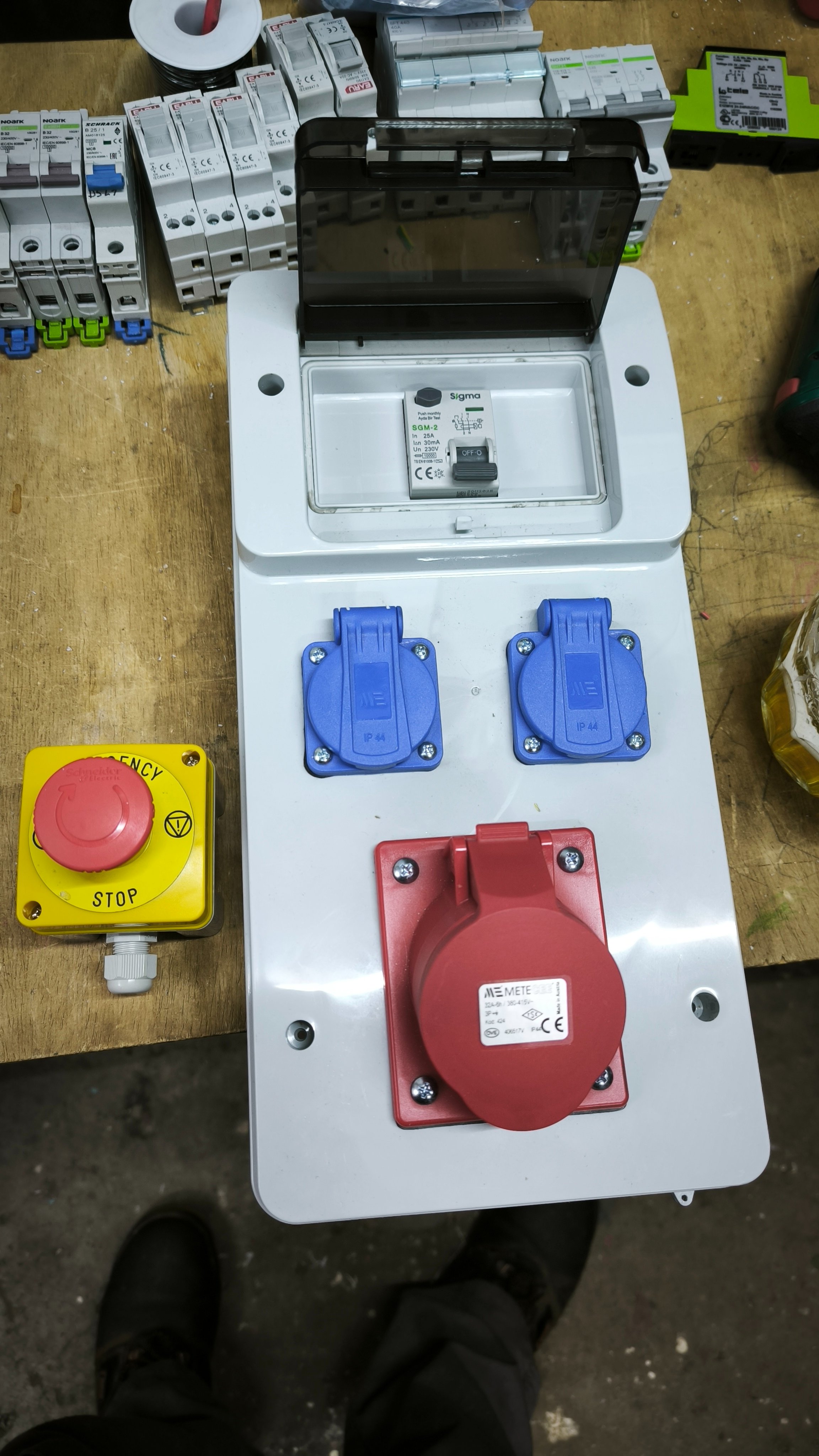 Schovám do toho vrabčí hnízdo trčících kabelů ze zdi, plus samozřejmě nějaké to jištění a tak. A ve finále jsem na tu prázdnou krabici z boku dal několik panelových zásuvek.