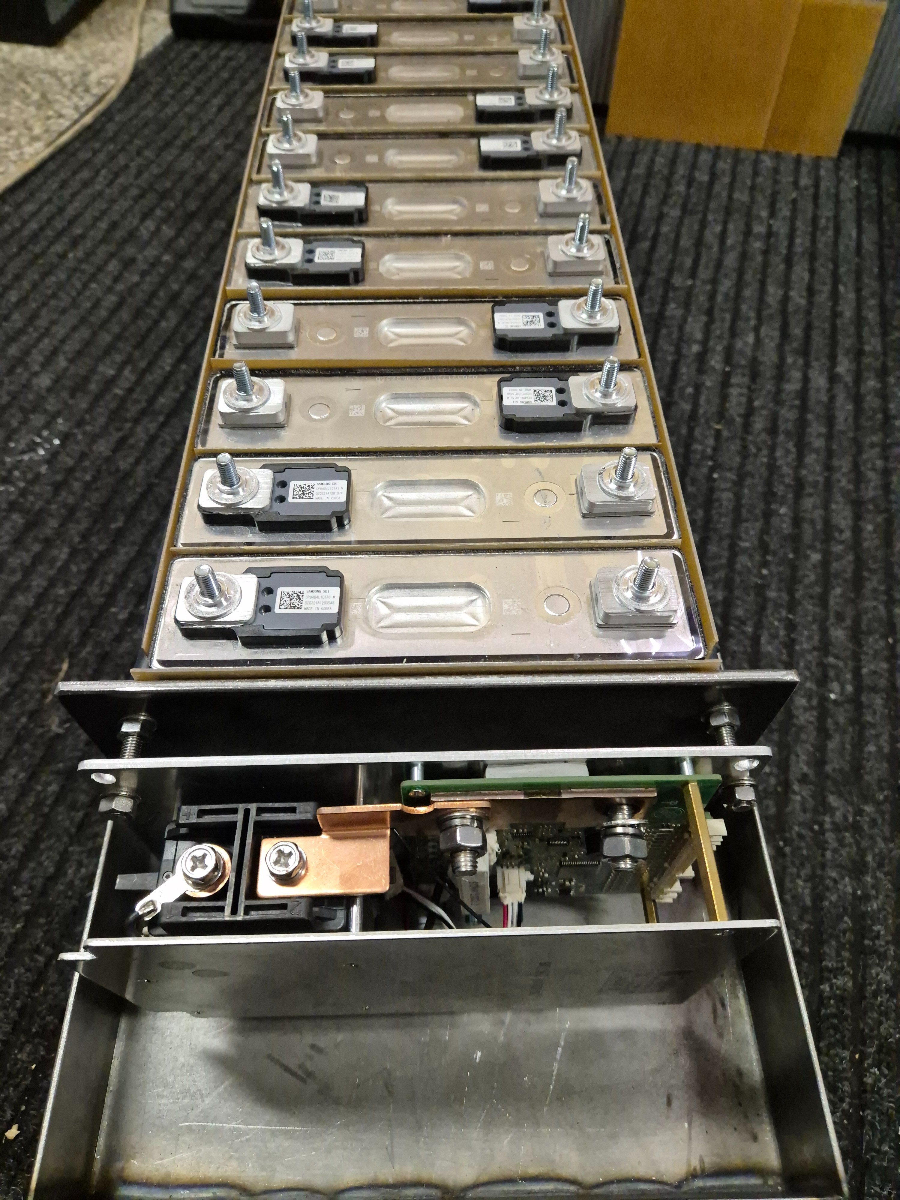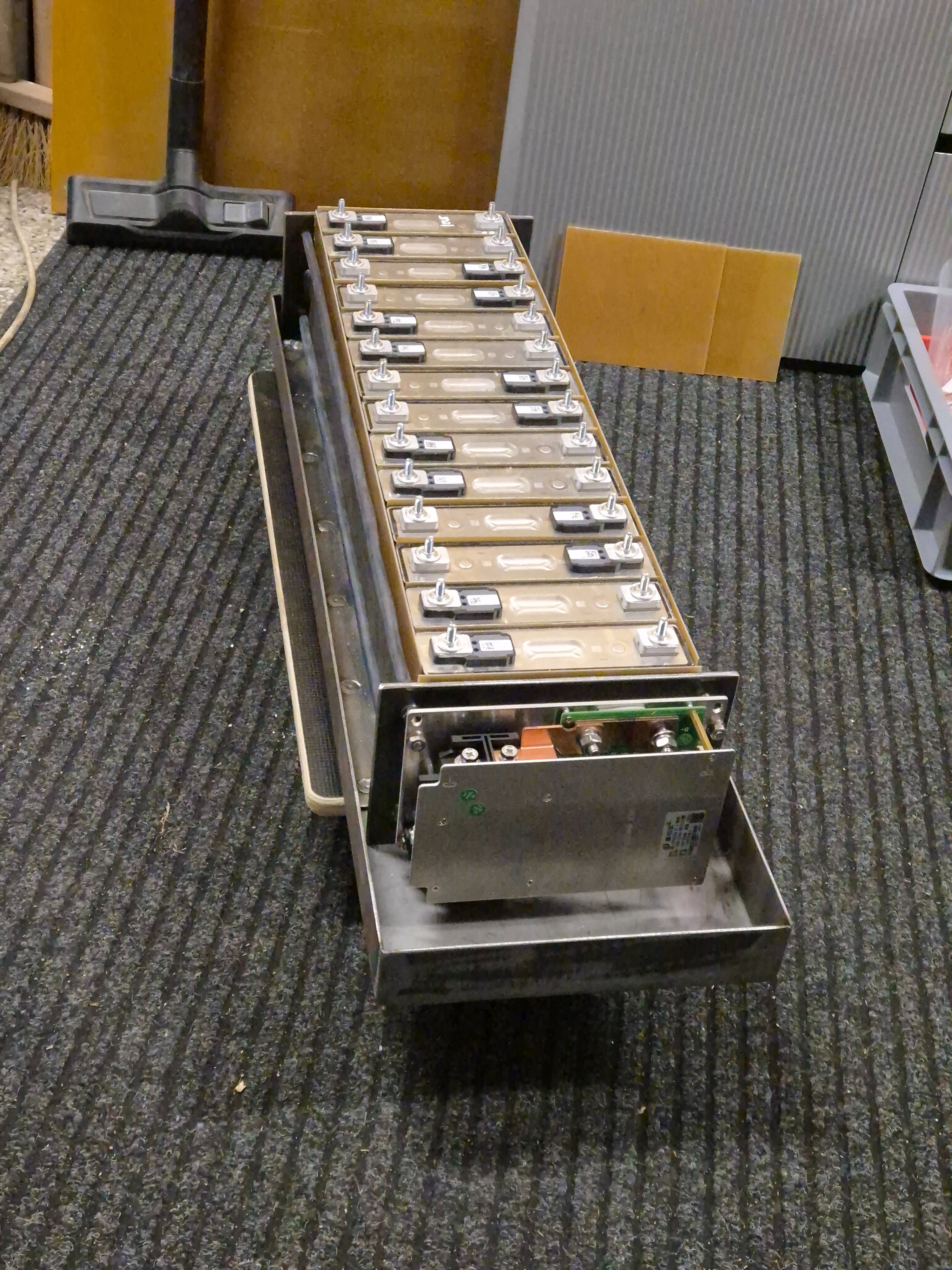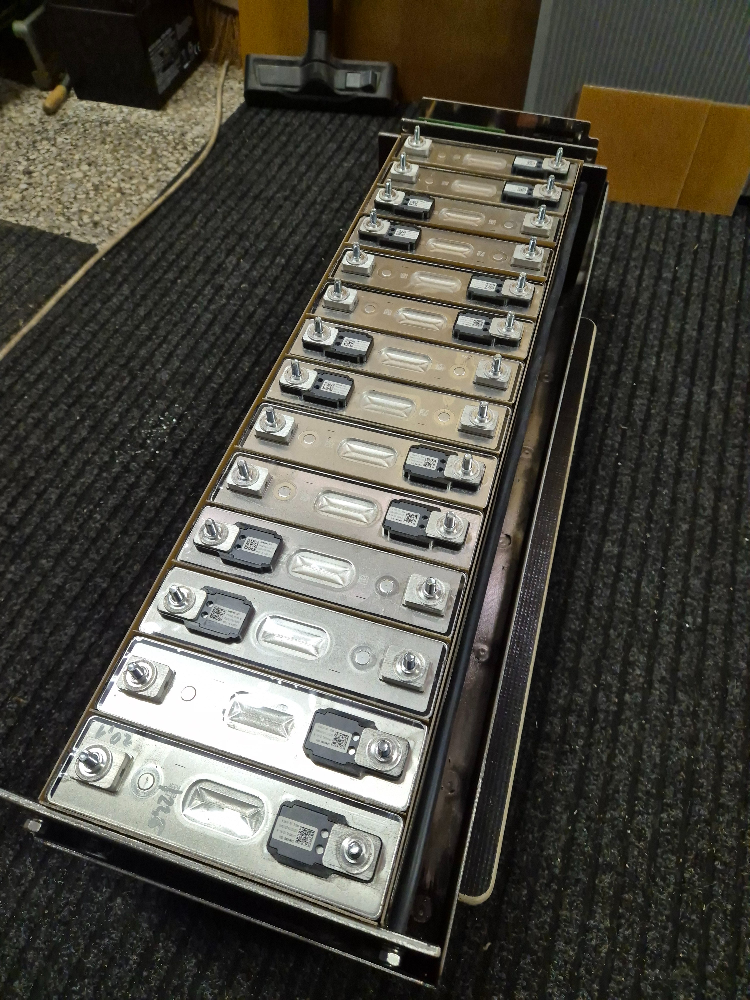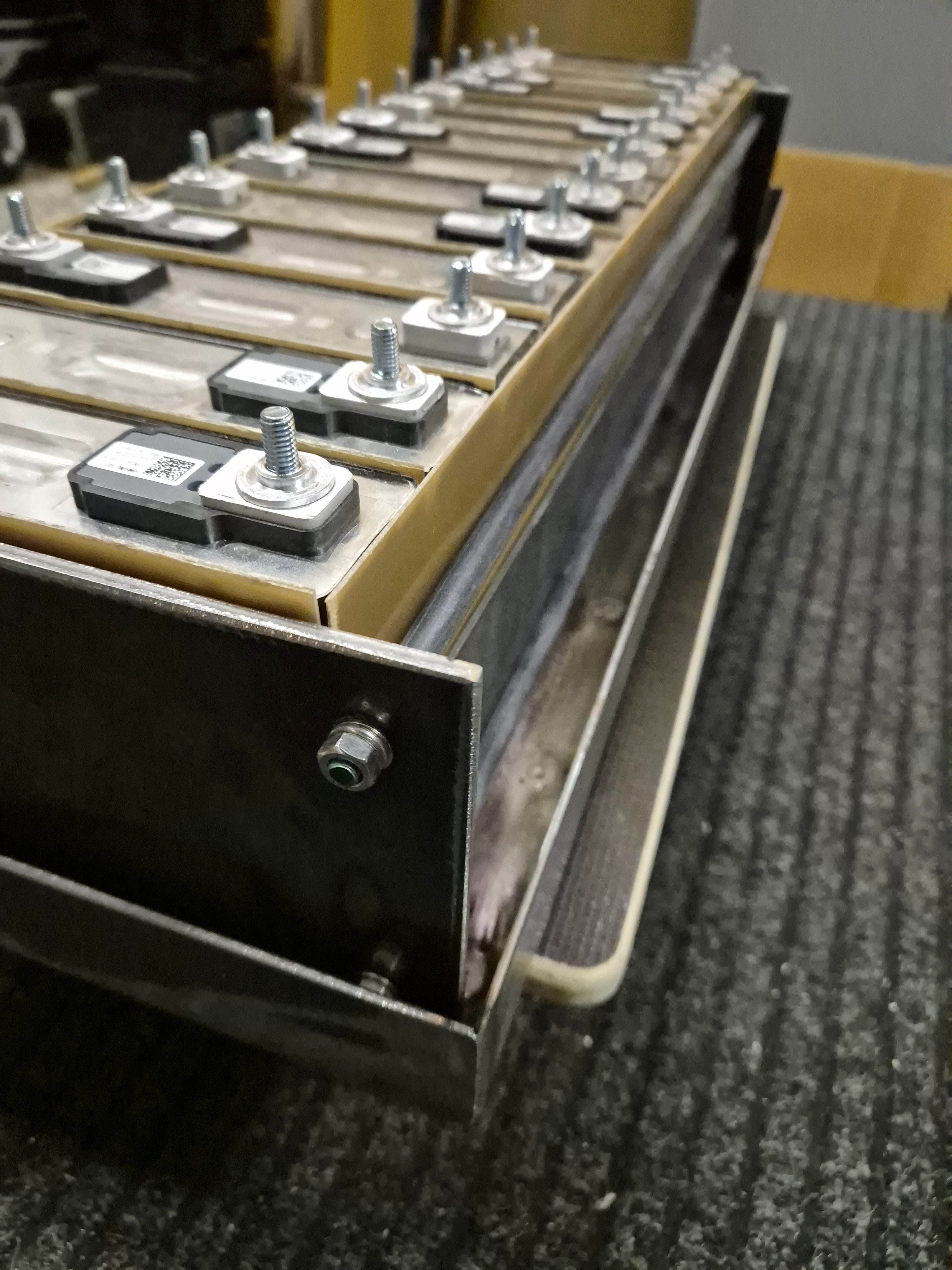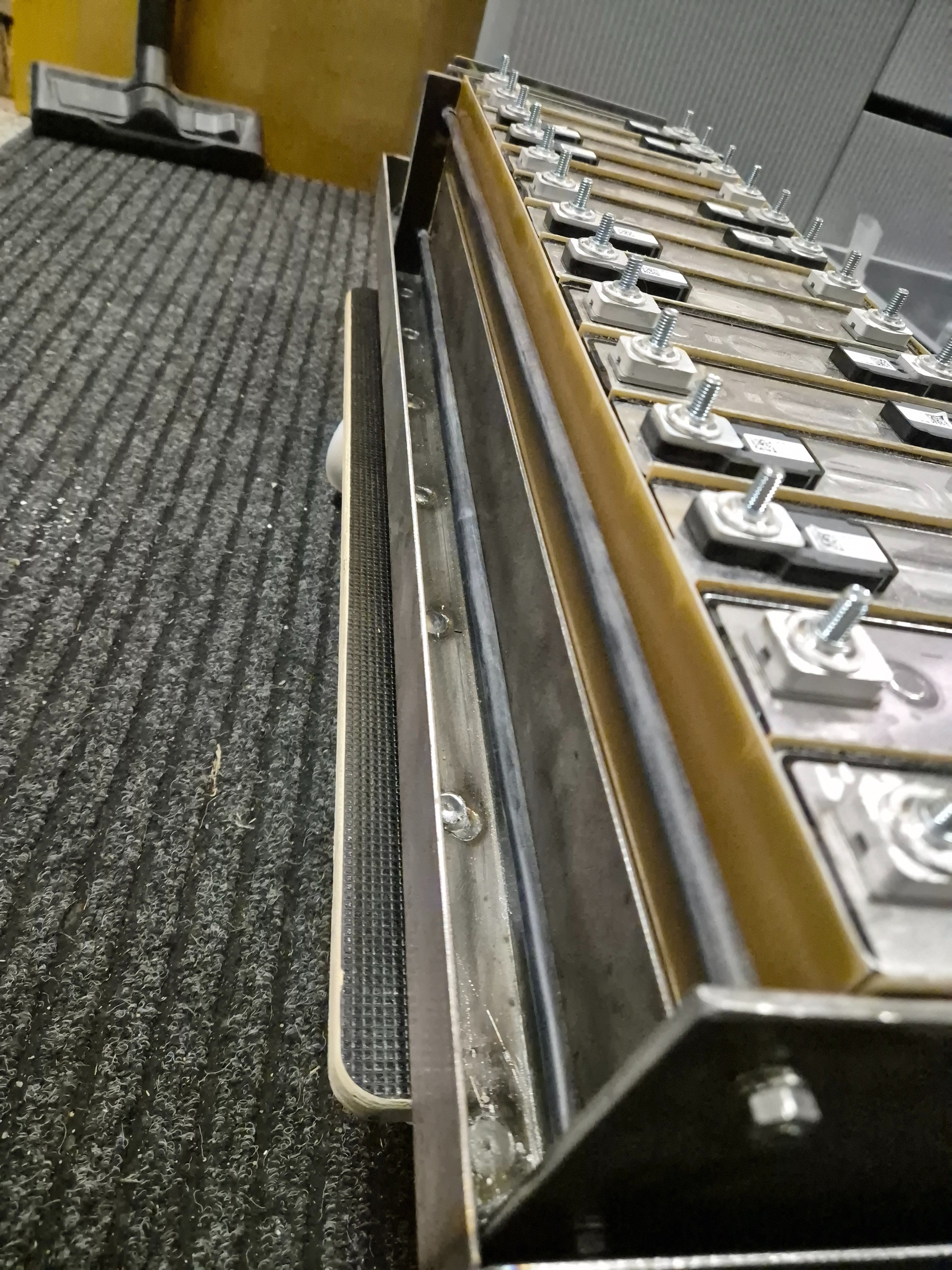 Clanky z nkonu, 94Ah. A na ten sklolaminat jsem vyhrabal kovidovou vybavu, narezal pasky na cirkuli, pak uz porcoval rezackou na plovoucku. Haluzove jsem na bazaru koupil par tabuli 1,2mm.