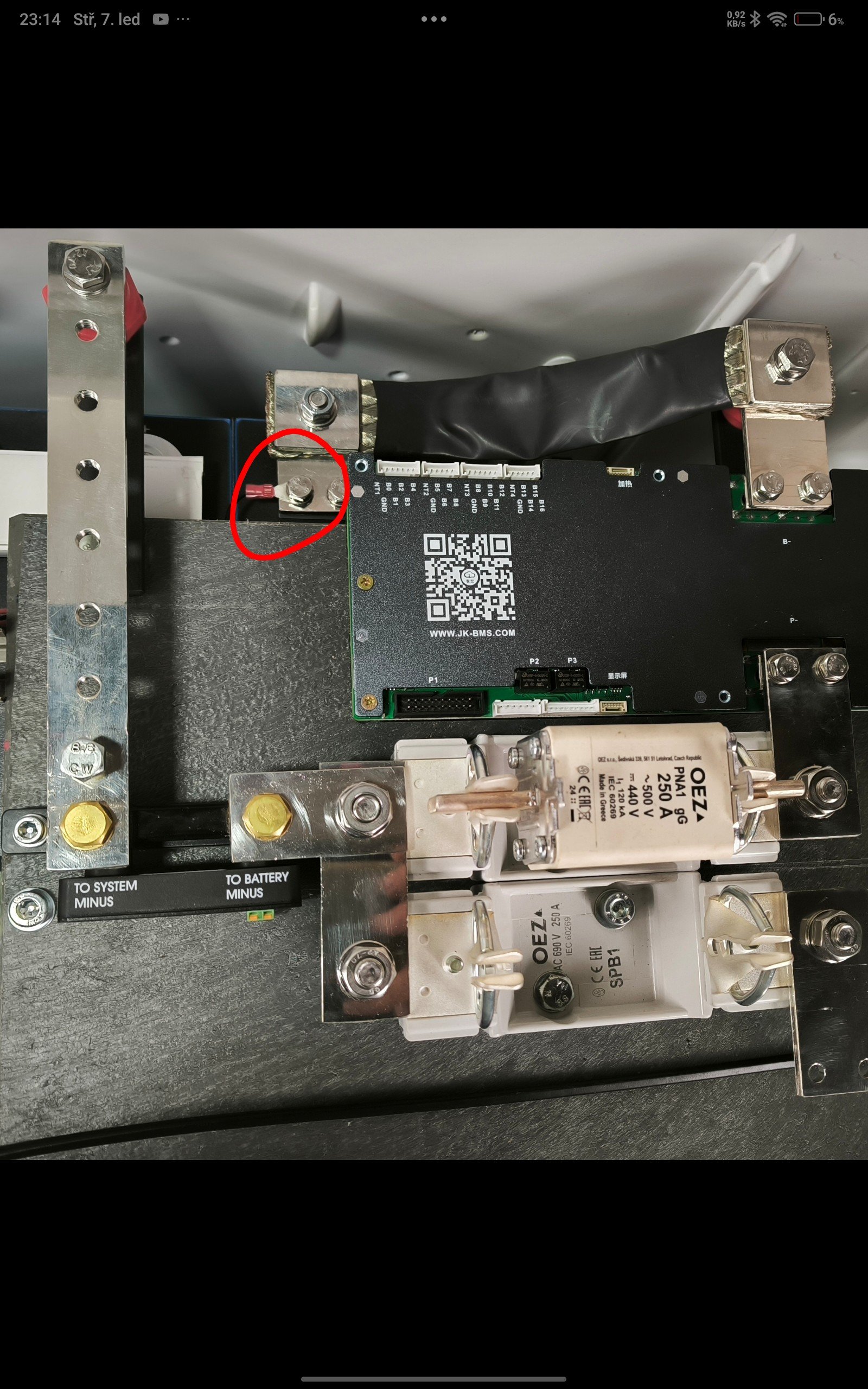 Jediné co mě napadá je, že od + a - baterie k měniči nemám slabší vedení jak 70mm a pružné propojky dodané s baterií z NKONU jsou 40mm