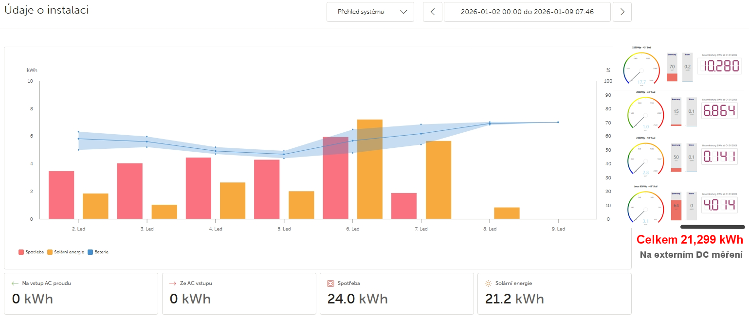Ještě porovnání s externím měřením DC na panelech - od vynulování 02.01.2026 - asi cca dobrý