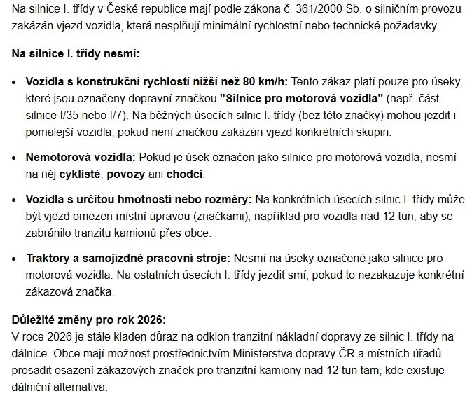 S deklarovanou maximálkou 45km/h je to na ježdění po městě nebo po okreskách, ale na dálniční úseky byť v rámci města to moc použitelné nebude. V Česku je dálniční minimálka 80 km/h. Na Slovensku minimální rychlost na dálnici stanovena není, ale i tak jet tam sotva padesátkou nebude asi moc vhodné. Bourat by s tím na dálnici asi nikdo nechtěl. Doba nabíjení baterie 7,2 kWh za 6 až 8 hodin dle slovenského a 8 až 10 hodin dle polského prodejce také nic moc tj. nabíjet to někde po cestě to asi určitě nechcete.
