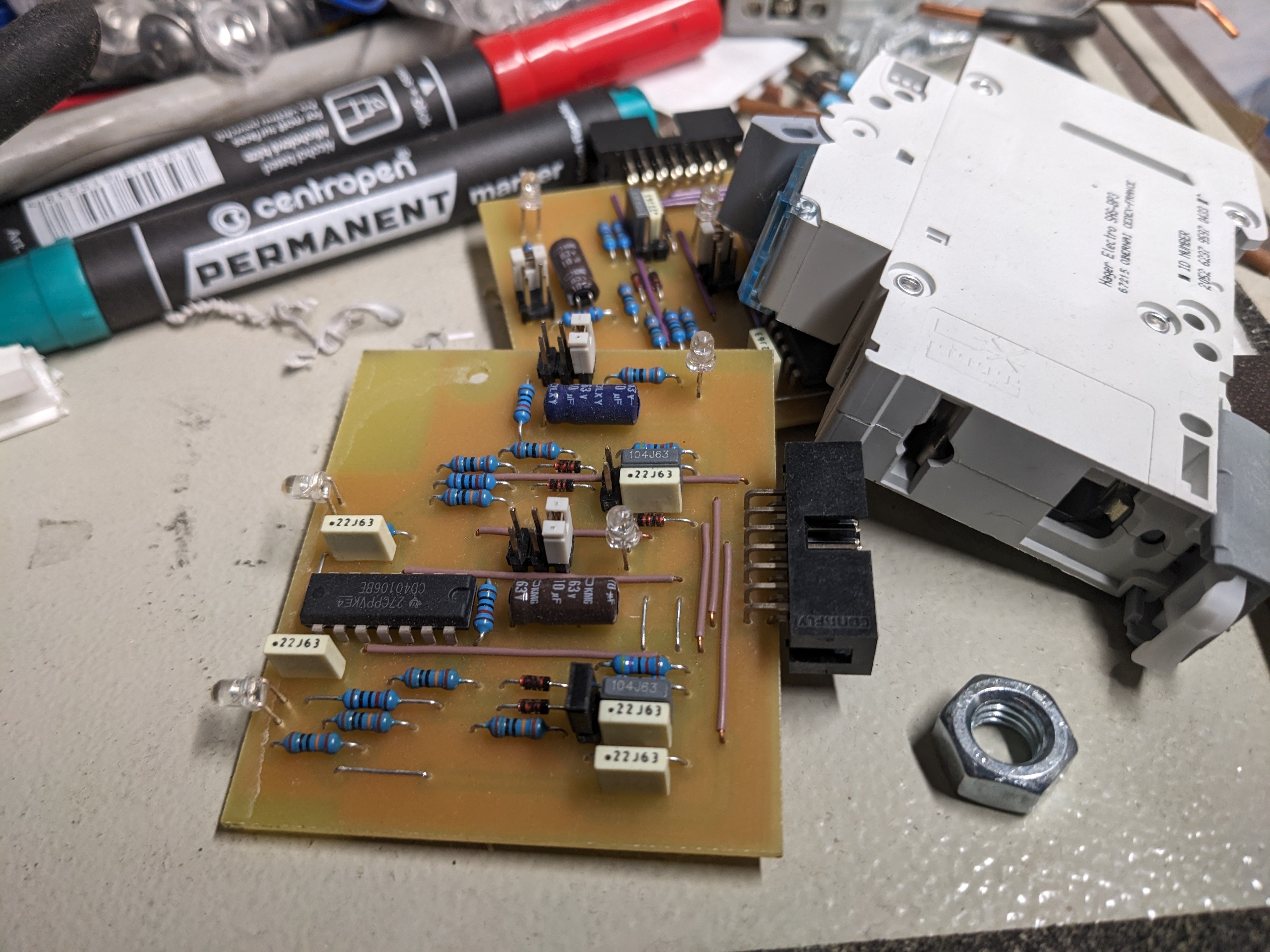 Když tato sada pro ohřev TUV dojede do konce, pošle signál na další desku s 9 stejnými časovači pro ohřev akumulační nádrže. Udělal jsem to jako rychlou provizorku asi před 2 lety, než spáchám něco pokročilejšího s procesorem, ale funguje to překvapivě dobře a zatím nemám důvod to předělávat.
