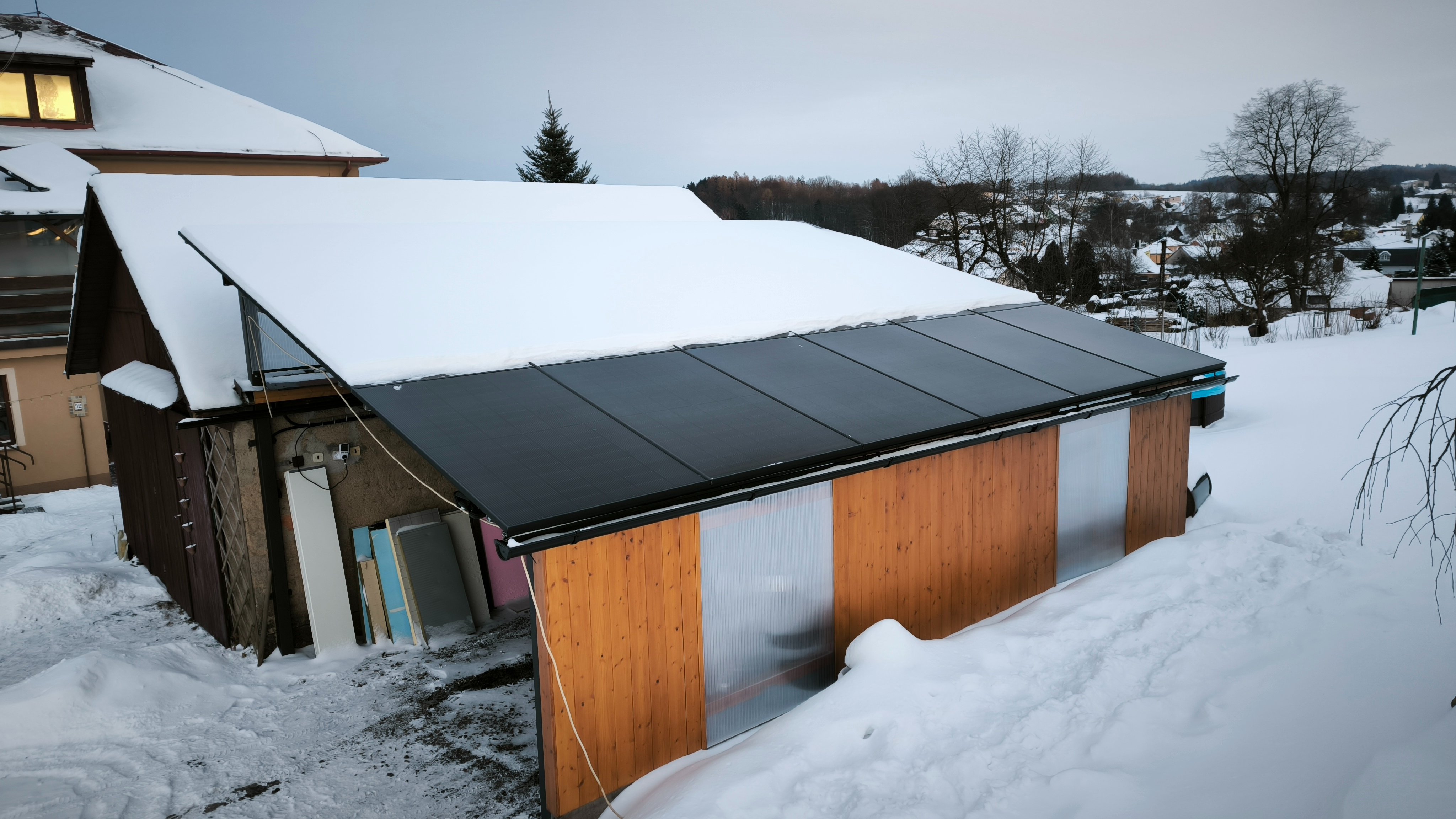 Mám vyzkoušený, že s cca 2cm sněhu na panelech se výroba blíží dni s inverzí.