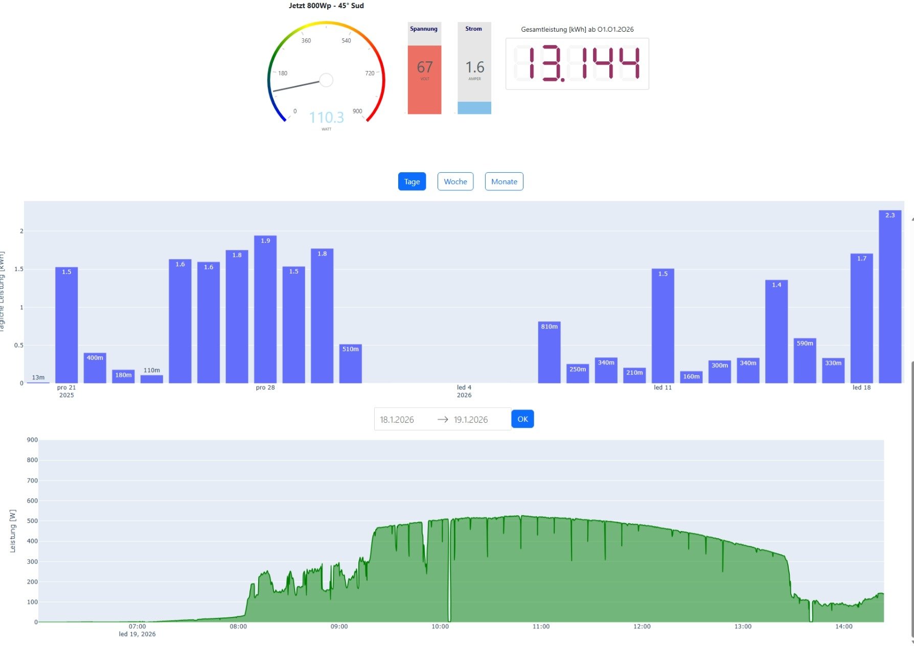 Pročítám si problematiku navrhovaných řešení. Je to na dlouho, protože tomu všemu úplně nerozumím. Musím to taky promýšlet z dlouhodobého hlediska. Zvažoval jsem taky situaci, že bych koupil z Německa paletu panelů (36 ks) za necelých 1000 Kč/kus (MonoSol 405 GS10-HC z druhé ruky). Jsou to P-PERC, ale za tu cenu? To klidně opřu i o plot do stínu za barák. 10 takových ve věčném stínu v jednom stringu dá tak 500 Wh? Jestli ano, tak si na sebe vydělají už po 4000 h provozu (čistě jen panely. Uchycení, vodiče, elektronika v tom není).