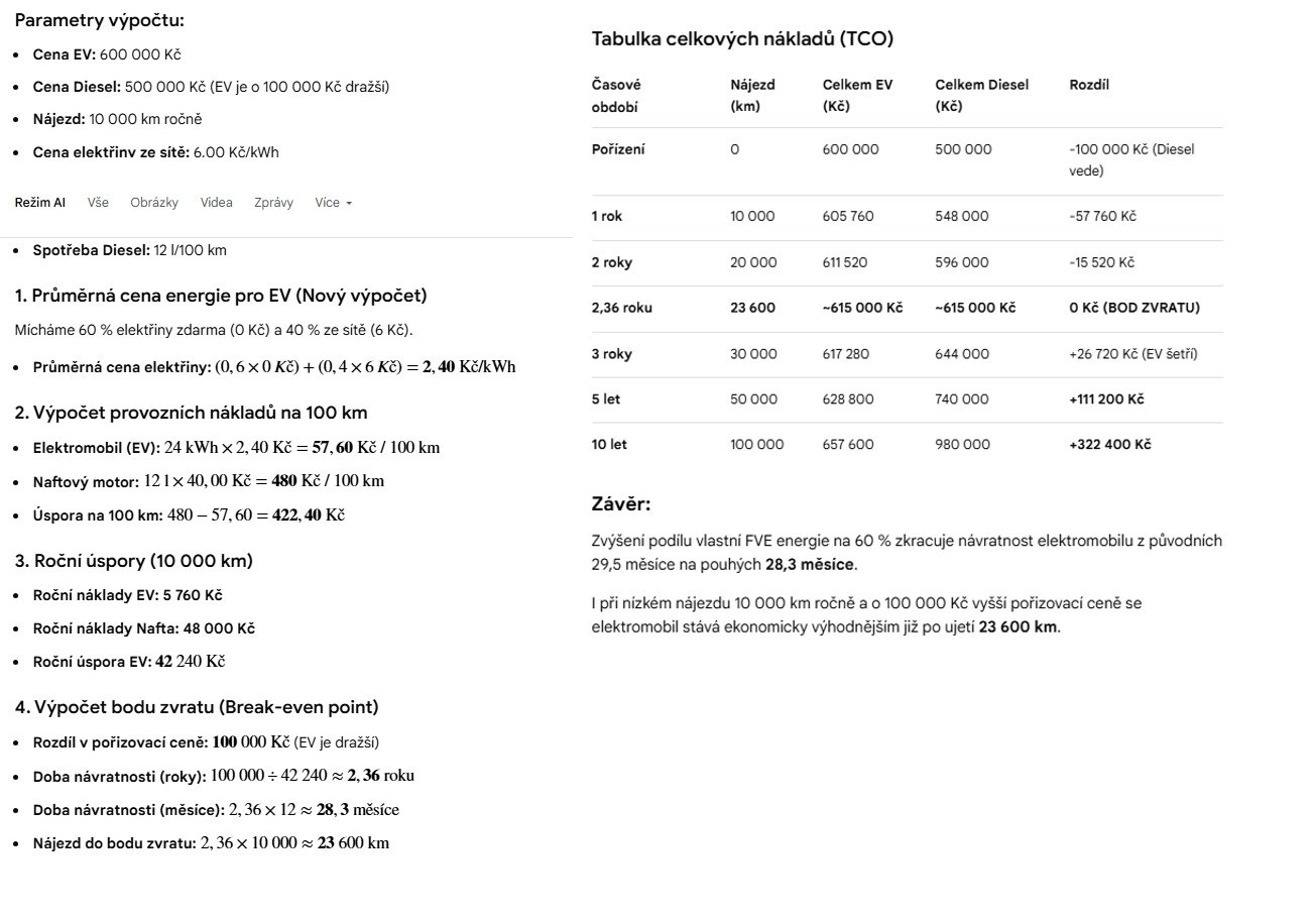 Samozřejmě tehdy byl výpočet na energii v DE a nemalý odpočet z daní za rok a cena auta bez DPH - pak je ten výpočet ještě výhodnější ale i tak.