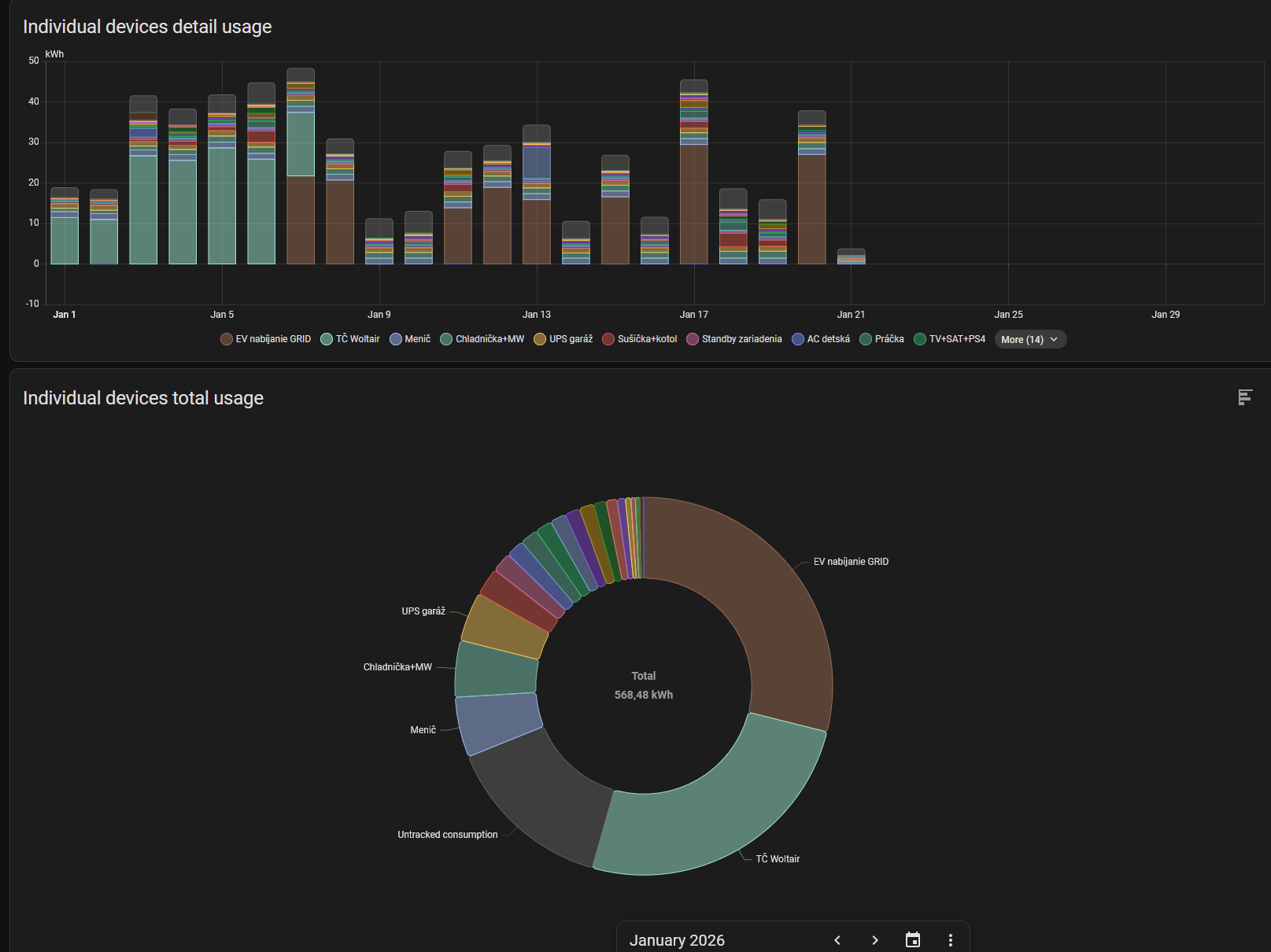 Ja mám doma ghetto meranie odberu zo siete (fototranzistor počítajúci bliknutie LED na elmeri) a na vybrané jednotlivé vetvy alebo zariadenia mám buď zigbee zásuvky (zaberá miesto), alebo Shelly Mini PM Gen3, TČ má vlastný elmer s RS485, v HA potom pekne vidím kde je aký odber a aká spotreba za časový interval.