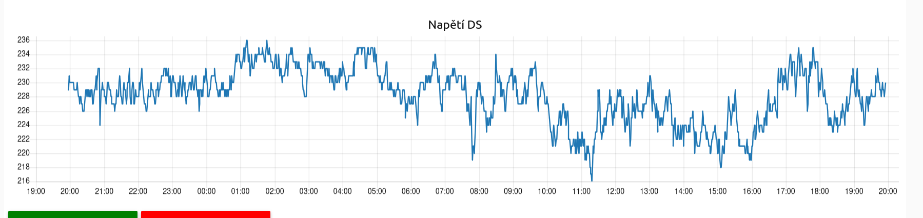 Dnes jsem se náhodně podíval kolik mi posílá ČEZ a naprázdno mám 214V. Když zapnu konvici tak napětí spadne na 209V.