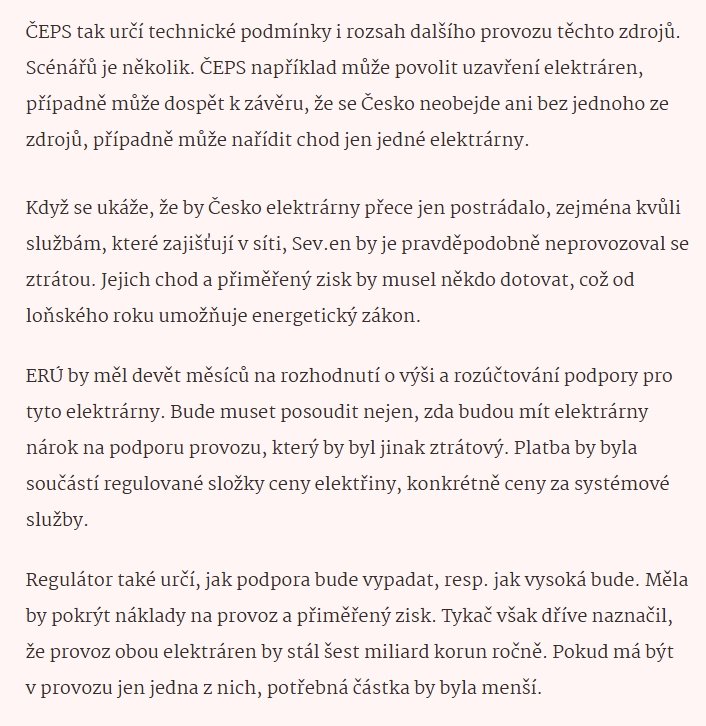 Nebo je to jenom spekulace a zase klasicky zahodíme vlastní elektrárnu a budume spoléhat, že s náma někdo nevyjebe?