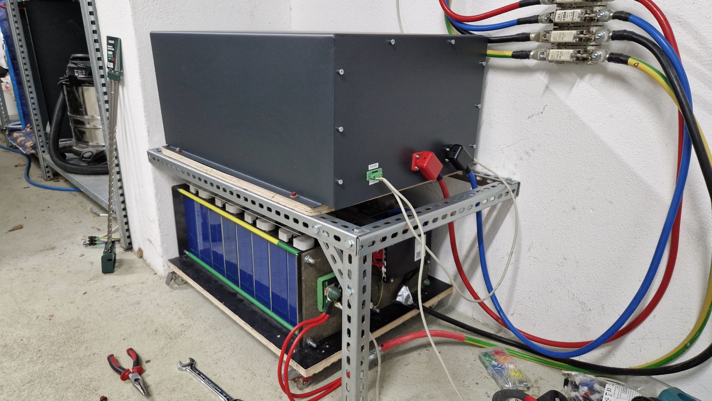 Malý upgrade - JBD BMS som vymenil za JK, na jedno čelo som nahodil Cetris a dal vyrobiť bedne z plechu - zatiaľ vo výrobe. Na predný panel prídu terminály a konektor na RS485, možno displej. Ešte mám v pláne zapojiť 16x DS18B20, ale bohovsky sa mi to nechce káblovať a spájkovať... a to vlastne dva krát, lebo dva packy