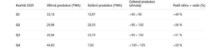 Pokud se ptáte na elektrárenský sektor, očekává se, že větrná a solární energie společně dosáhnou podílu kolem 50% na spotřebě elektřiny.