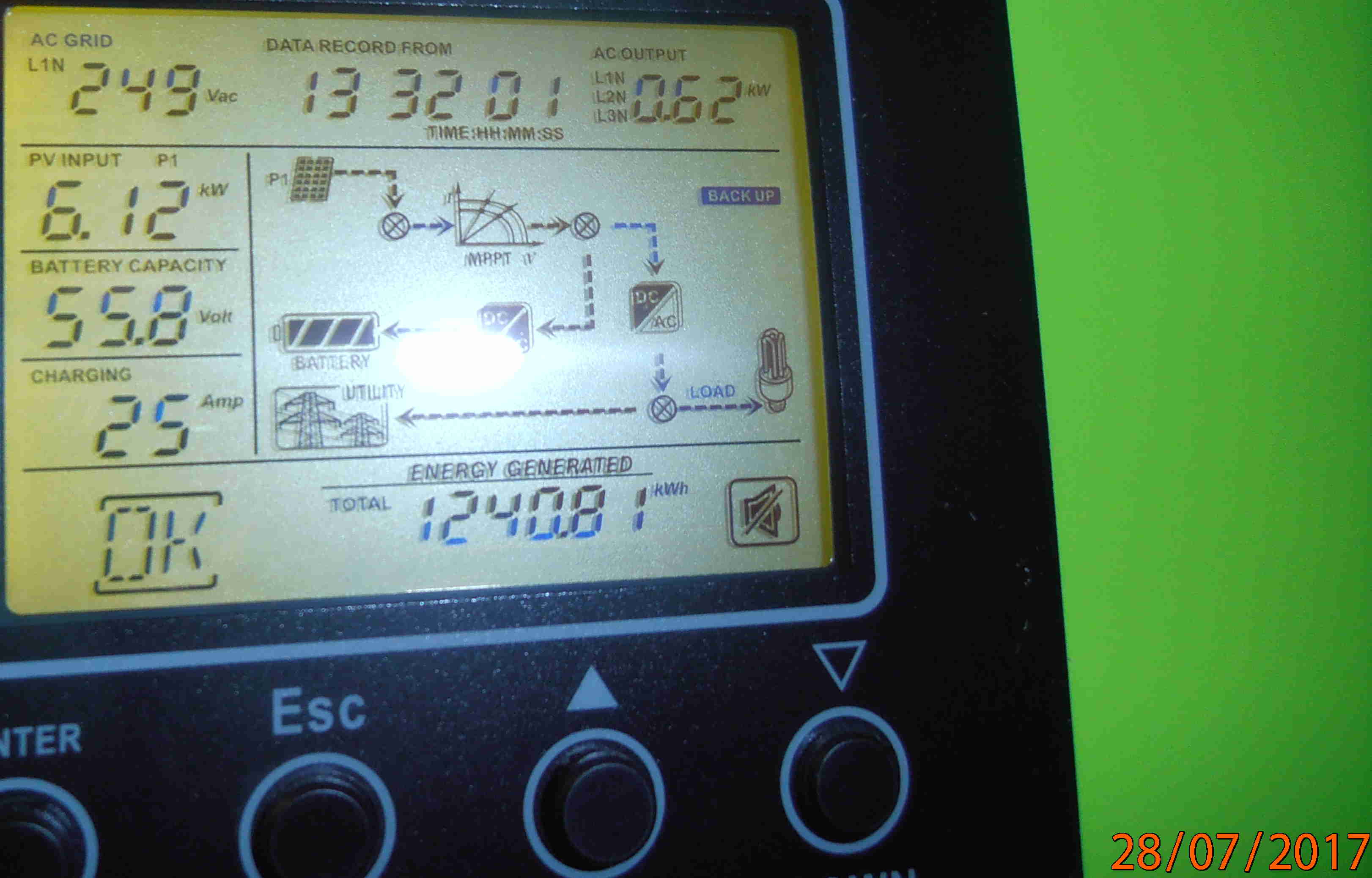 Významné méně časté spotřebiče v domě: 3f. pekárna cca 6kW pro pečení krásných a dobrých perníčků http://alena-velcovska.webnode.cz/ , 1f. průtokový ohřívač vody 4kW, stále čerpající čerpadlo v zahradním rybníčku, a ostatní standard jako varná deska, trouba, mikrovlnka, atd... Výroba 6,12kW z 5,4kW nainstalovaných uprostřed léta, teplota vzduchu cca 25°C.