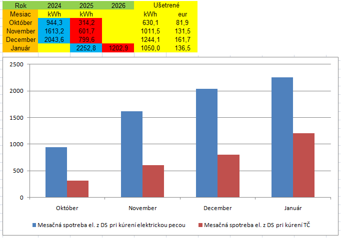 Túto vykurovaciu sezónu kúrim s TČ už štyri mesiace, tak som to trochu porovnal s vlaňajškom, kde som kúril elektrickou pecou.