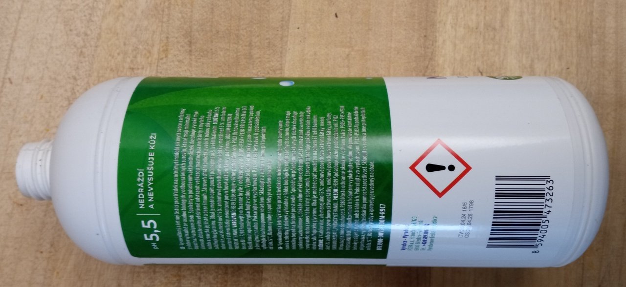 Když jsme u těch "jedlých" čistících prostředků, tohle používáme už deset v naší v naší zahradě, která nemá žádné certifikáty, ale ani žádné jedovaté přípravky, potraviny pěstujeme pro sebe a svou potravinovou bezpečnost. Vhodné i na mytí ovoce a zeleniny, i když my tyhle voskem konzervované produkty a pod. nekupujeme už těch deset let. Přípravek používáme i doma na ruce, nádobí, na chalupě na vše a ta voda je pak používána na zahradě, žádná kanalizace, žádná žumpa, použije se tak jak je, krom teda mytí rukou od ropných produktů.