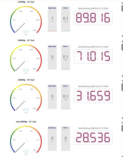 U nás už jsme neviděli slunce 14 dní. Pořád temno někdy více někdy méně. Výroba se pohybuje od 6 kwh do 11 kwh, dnes například 6,5 kwh. Vždycky si nabijeme baterku jedeme na ní cca 2 dni a pak znovu cca 5 dní nabíjet. Ale věřím, že už se to bude jenom zlepšovat. Čistě jen to, že se prodlužuje den je pořád více znát na výrobě. Hlavně jsem si udělal 4 stringy panelů čistě naležato se sklonem cca 5 st. Ty nás v těchto dnech hodně zachraňují. Než jsem tuto optimalizaci udělal a sklon byl cca 60 st tak to za těhle temných dní dávalo max 4 kwh denně. Potom co jsem 4 stringy takto položil tak se dostávám klidně na 10 kwh denně. Samozřejmě je to stále málo, ale každý watt navíc dobrý.