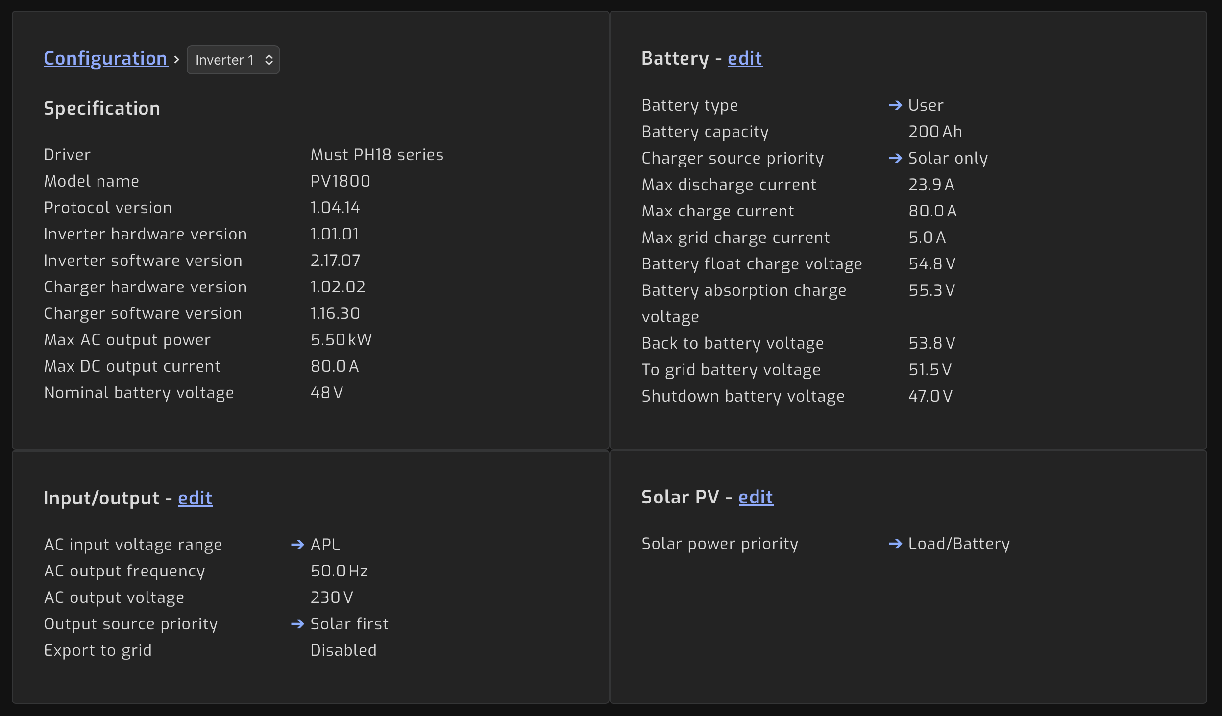 Inverter hardware version: 1.01.01