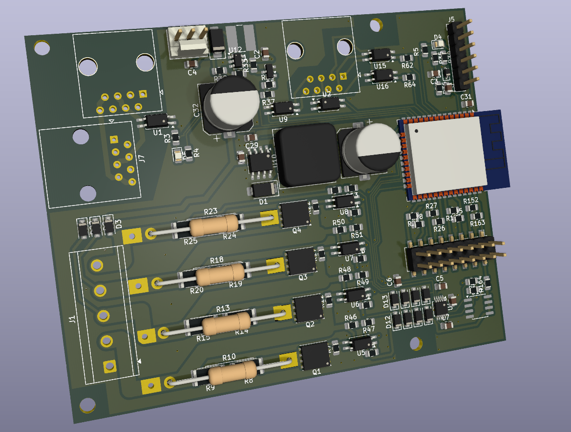 Vzhledem k tomu, že se to začalo blížit čtverci, tak jsem posunul elyty dál od odporů co topí, a do zbylého místa udělal ještě fan header a když už se to blížilo čtverci, tak čirou náhodou jsou úchytové otvory kompatibilní s 8cm větrákem. (Ventilátor je SW zapínatelný, je tam na větrák cca 10 V přes boost měnič)