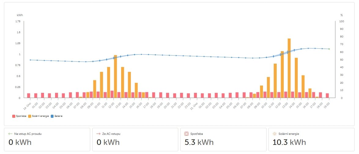 Něco se nyní hromadí v baterii a něco pobere vlastní systém a něco malé spotřeby a topení baterkám a výsledek je sice něco v baterce, ale na těch ohřevech vody to bylo patrné každý den a pomáhalo i v zimě - to se nyní děje jen trošku - a jednou za čas.