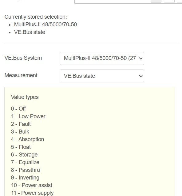 Tady to mášElektroEzs píše: úte úno 17, 2026 7:07 amJde rele2 na Cerbu nastavit pres NR aby spinalo pokud jsou Multiplusy prepnuty na inverter?