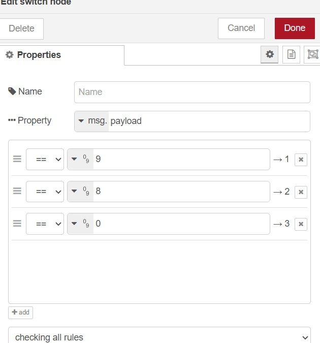 Nejak nevim co nastavit v tom node SWITCH, potrebuju kdyz je inverting aby rele sepnulo
