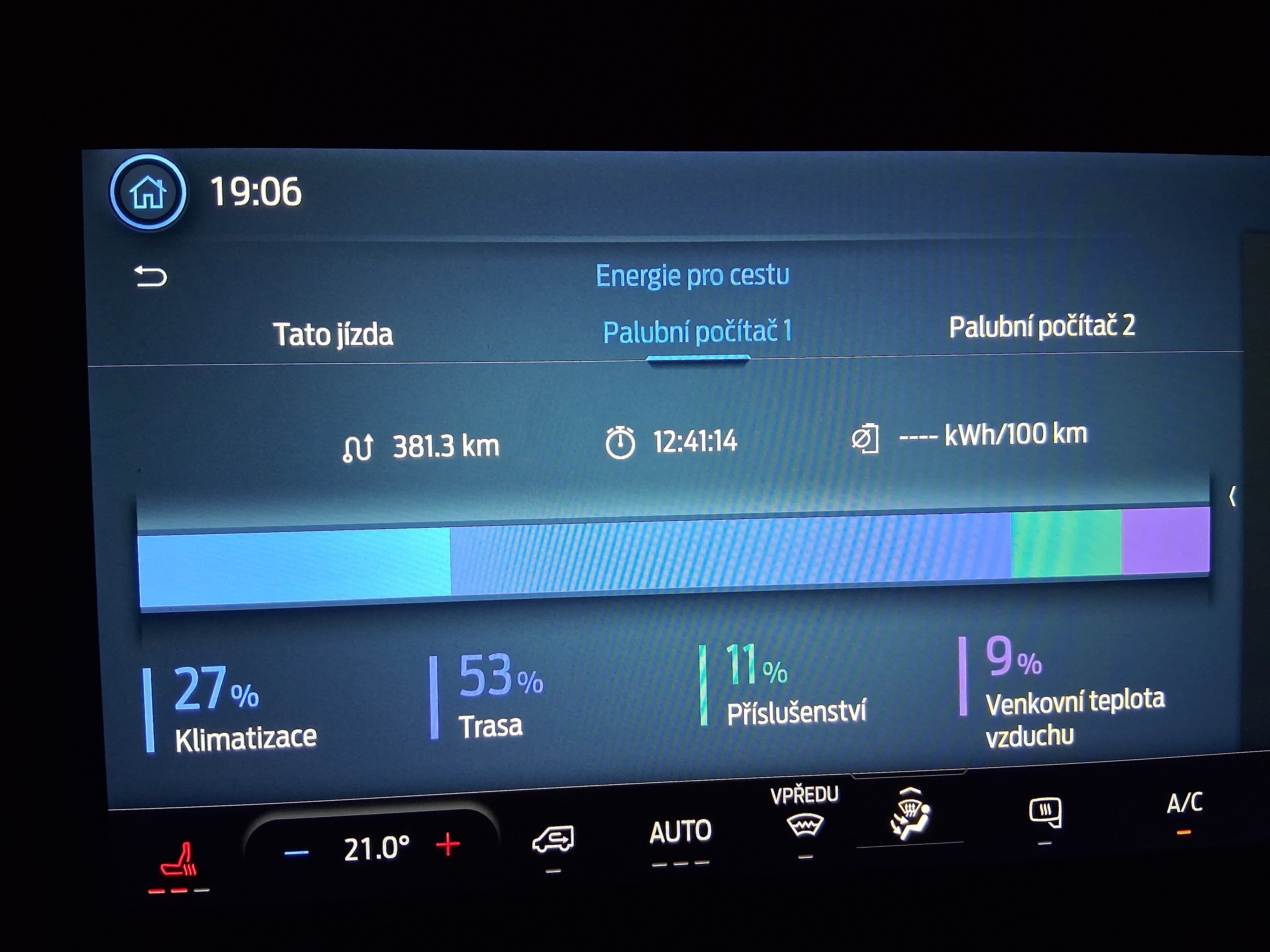 A tady jsem to vyfotil a to tu klimu každou cestu vypínám - to znamená že je to klima + topení + sedačky - ta první procenta :oops: 27% :oops: