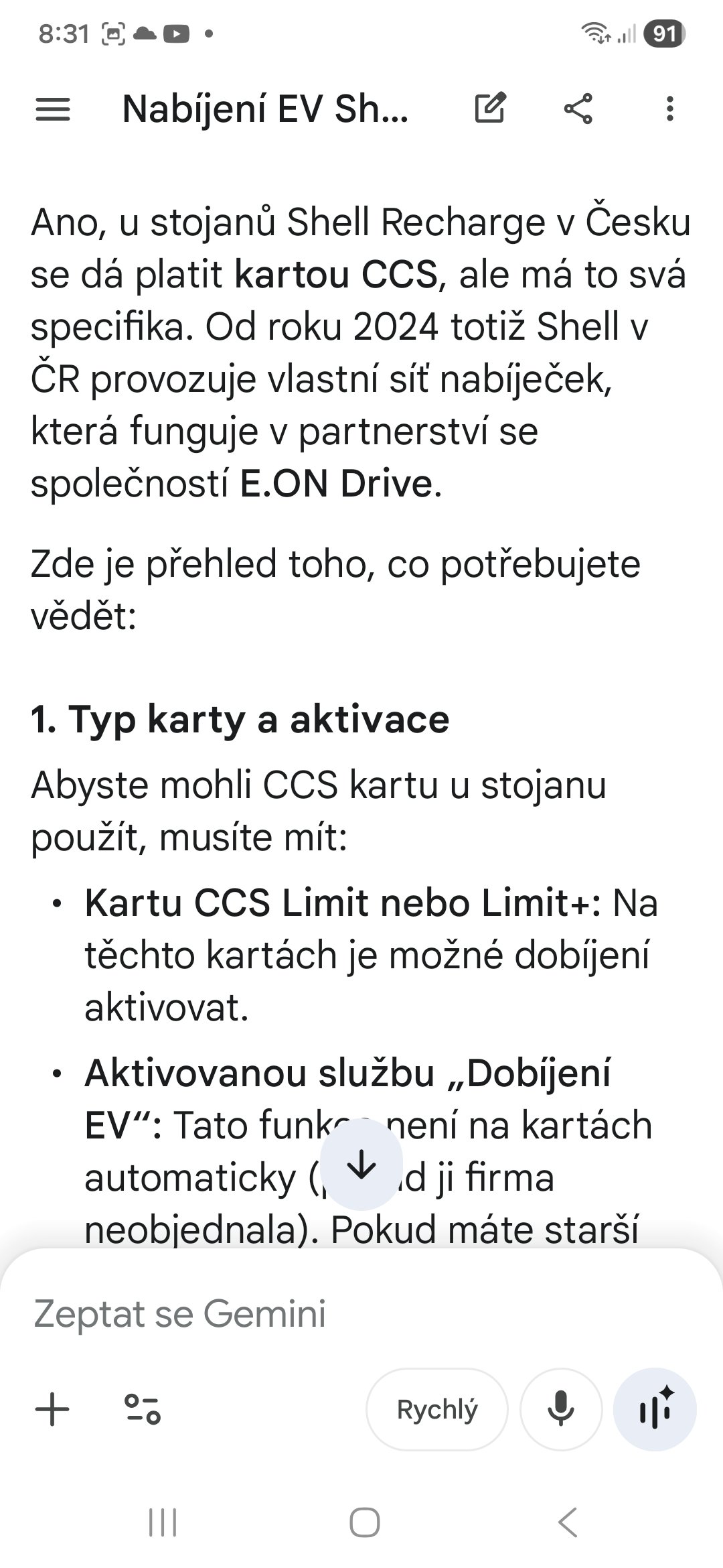 U Shell jsem nebyl, jel jsem podle navigace samotné aplikace ke stojanu který doporučila, což byl stojan ČEZ v Berouně u Kauflandu