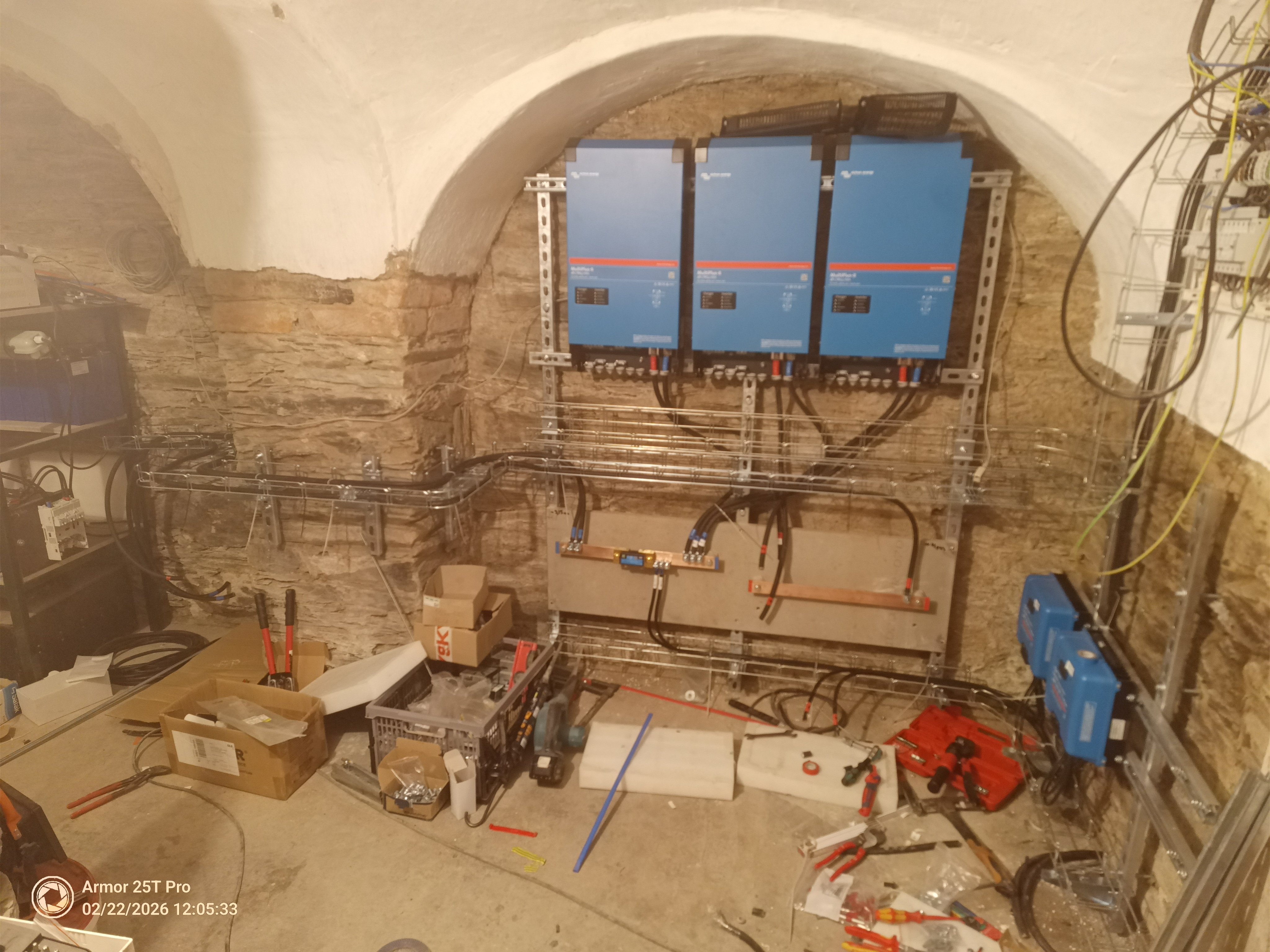 9,2kWp JV 45°, 4,6kWp JZ 45°, 2,3kWp JV 90°, 2 x Victron MP II 5kVA, 3 x SmartSolar 150/70, Smartshunt, Cerbo, 16x280Ah + 16X300Ah + 16x300Ah LiFePO4 + 3xJK BMS.