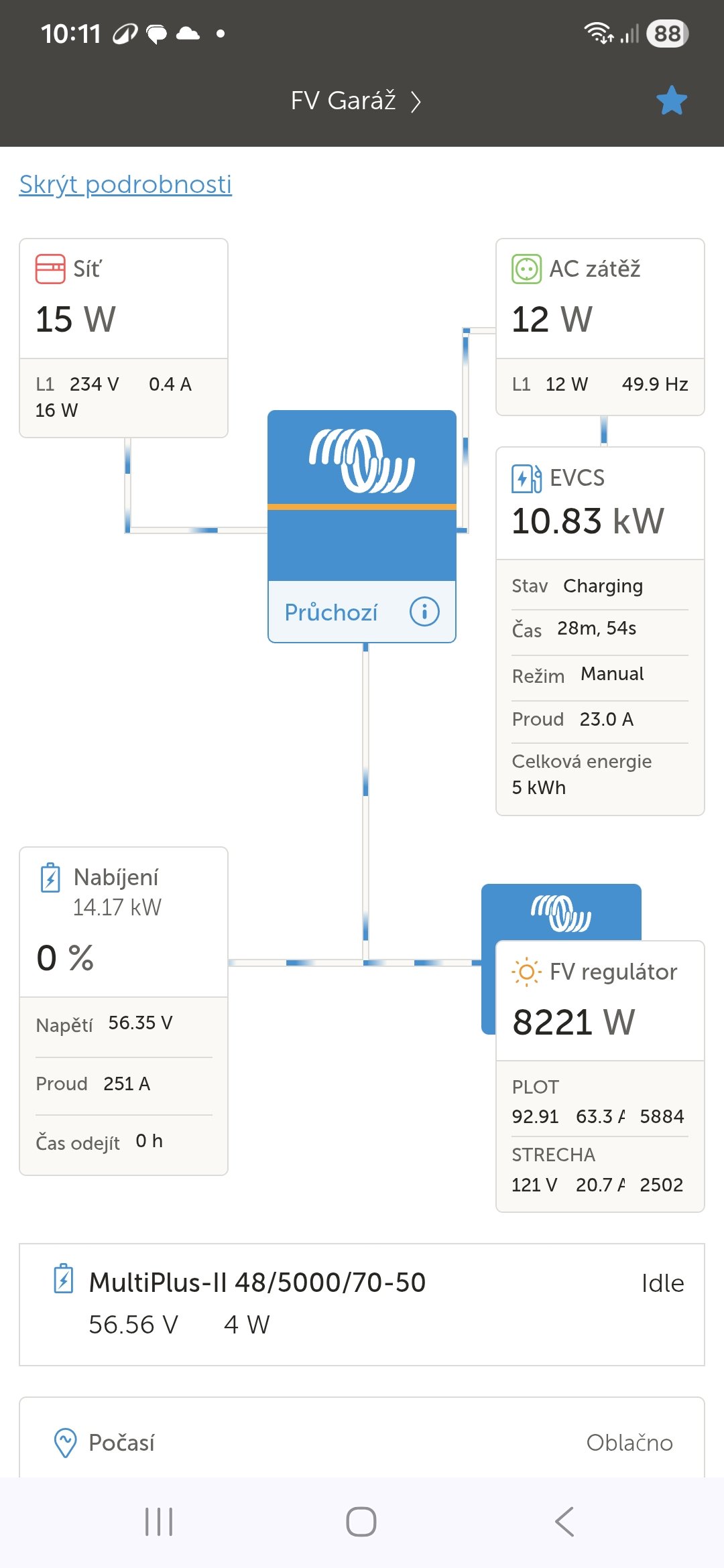 32540Wp, 90ks vakuové trubice jihozápad, (Lifepo4 17S 520Ah, trakční gel 800Ah), Axpert Max 7200VA, Easun Isolar 5500VA,Multiplus 2 48/5000,MPPT 150/85, 150/100