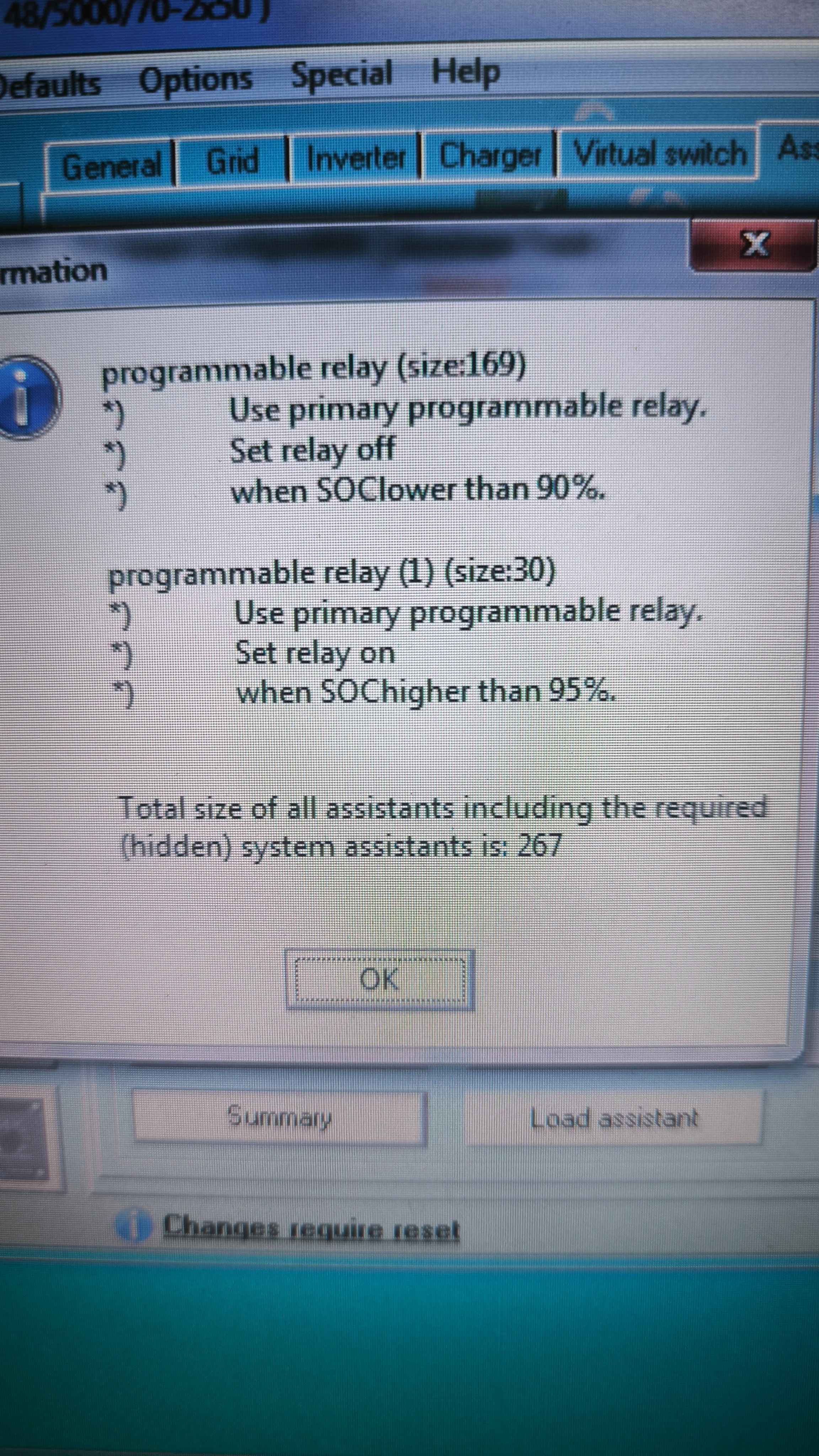 Myslím, že mechanické relé v Multiplusu je Primary programmable relay a pak jsou 2 tranzistory, spínající vstup na GND a ty jsou Secondary programmable relay K1 a K2.