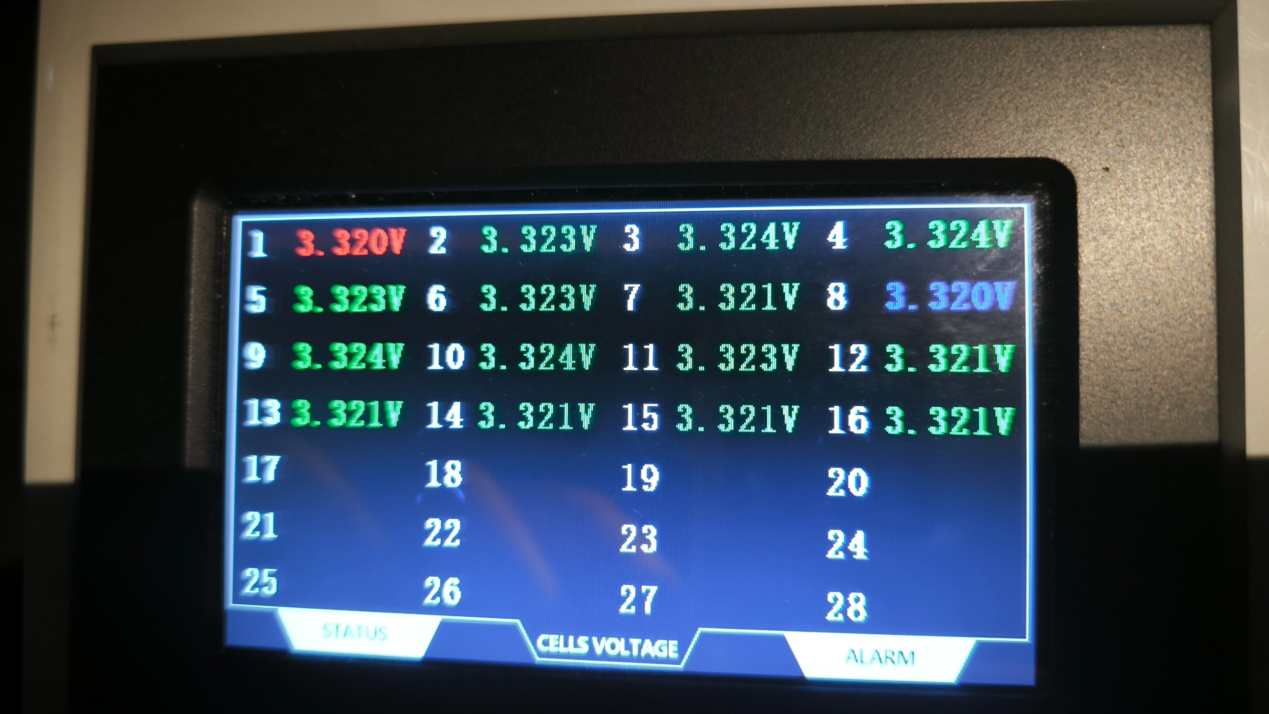 Články rozbalancované nejsou, teď večer když je klid tak to měří správně, ale jak valí MPPT a je odběr, tak článek 1 a 16 měl fizicky multimetrem 3.35V a na BMS to lítalo dle foto. Ta pojistka je na napájení BMS.