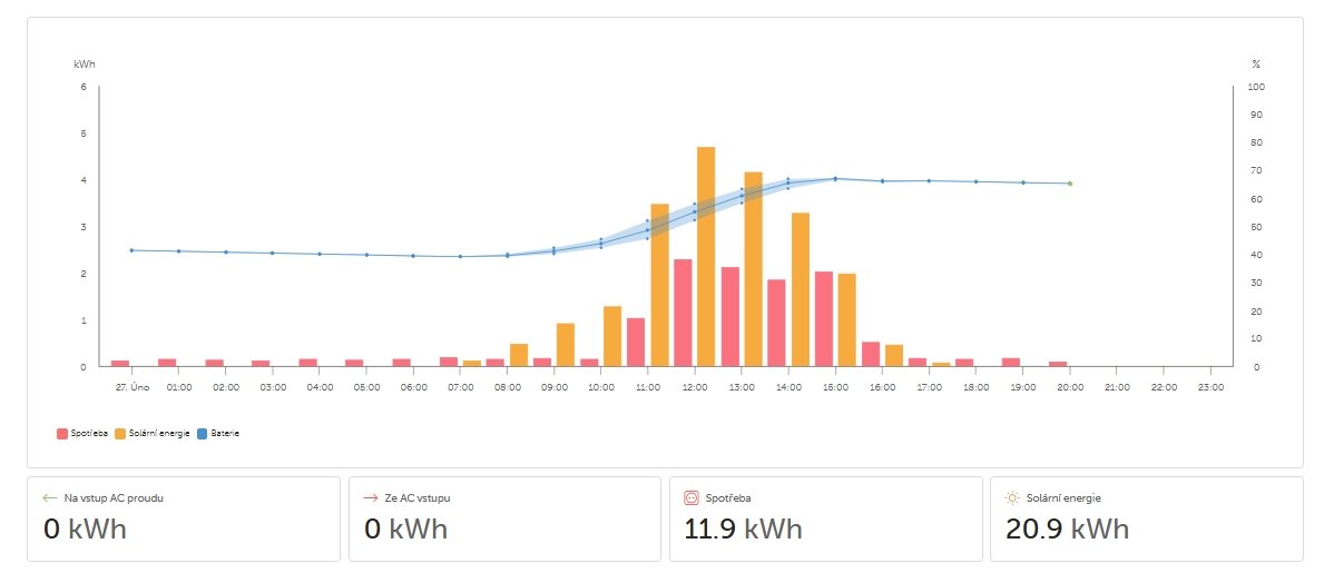 Za dnešok aj včerajšok po 10 kWh. Aj malé pole dokáže nabiť veľkú baterku