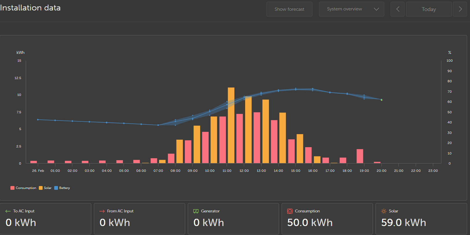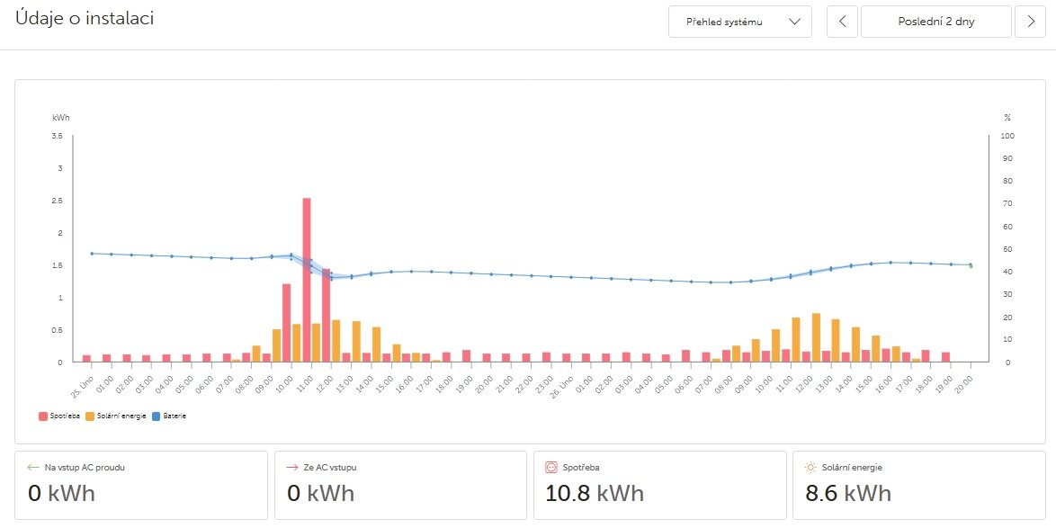 Za dnešok aj včerajšok po 10 kWh. Aj malé pole dokáže nabiť veľkú baterku