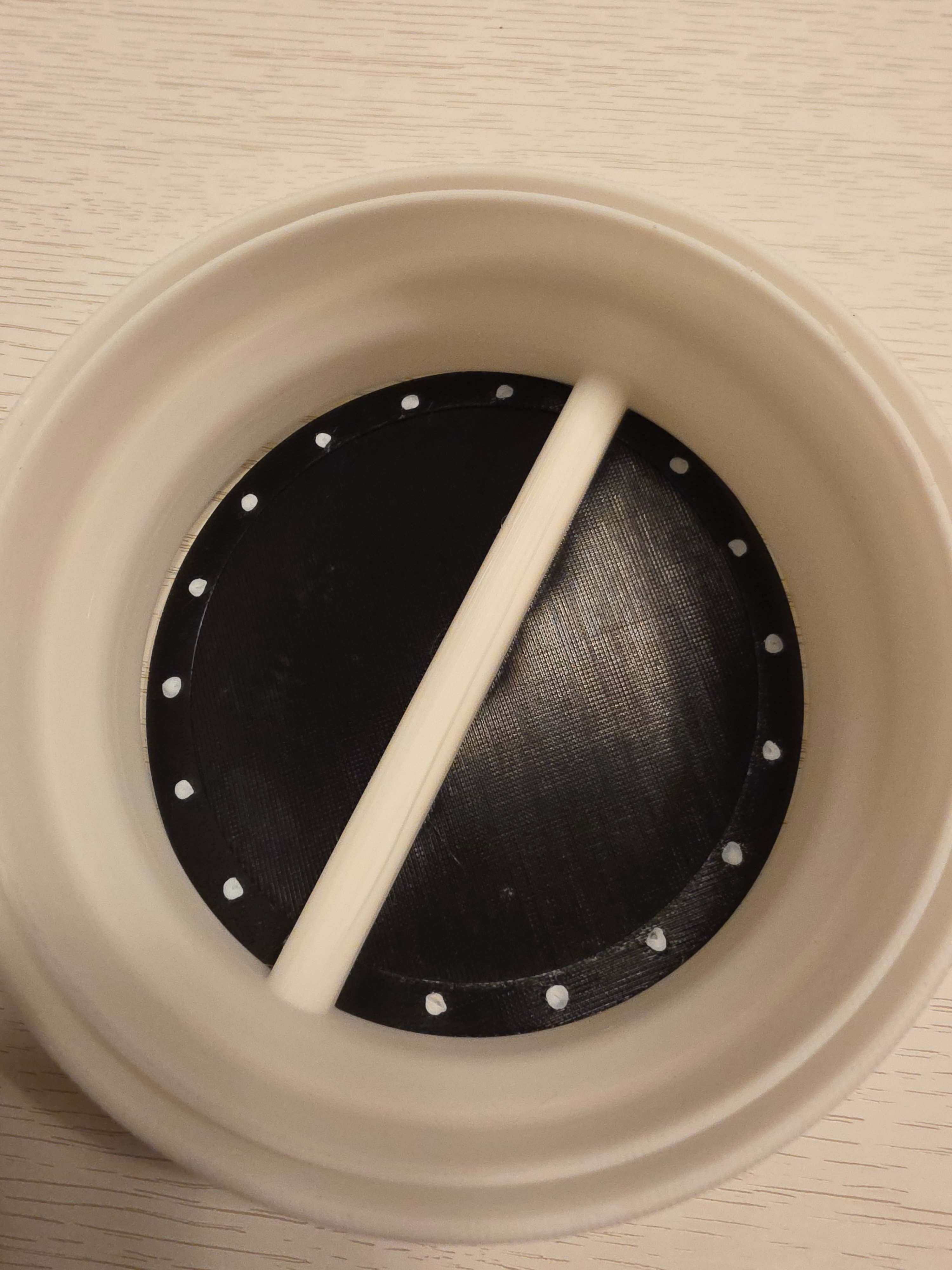 Samotná klapka bude kruh z PLA 1.5 mm hrubý, možno aj 1 mm.