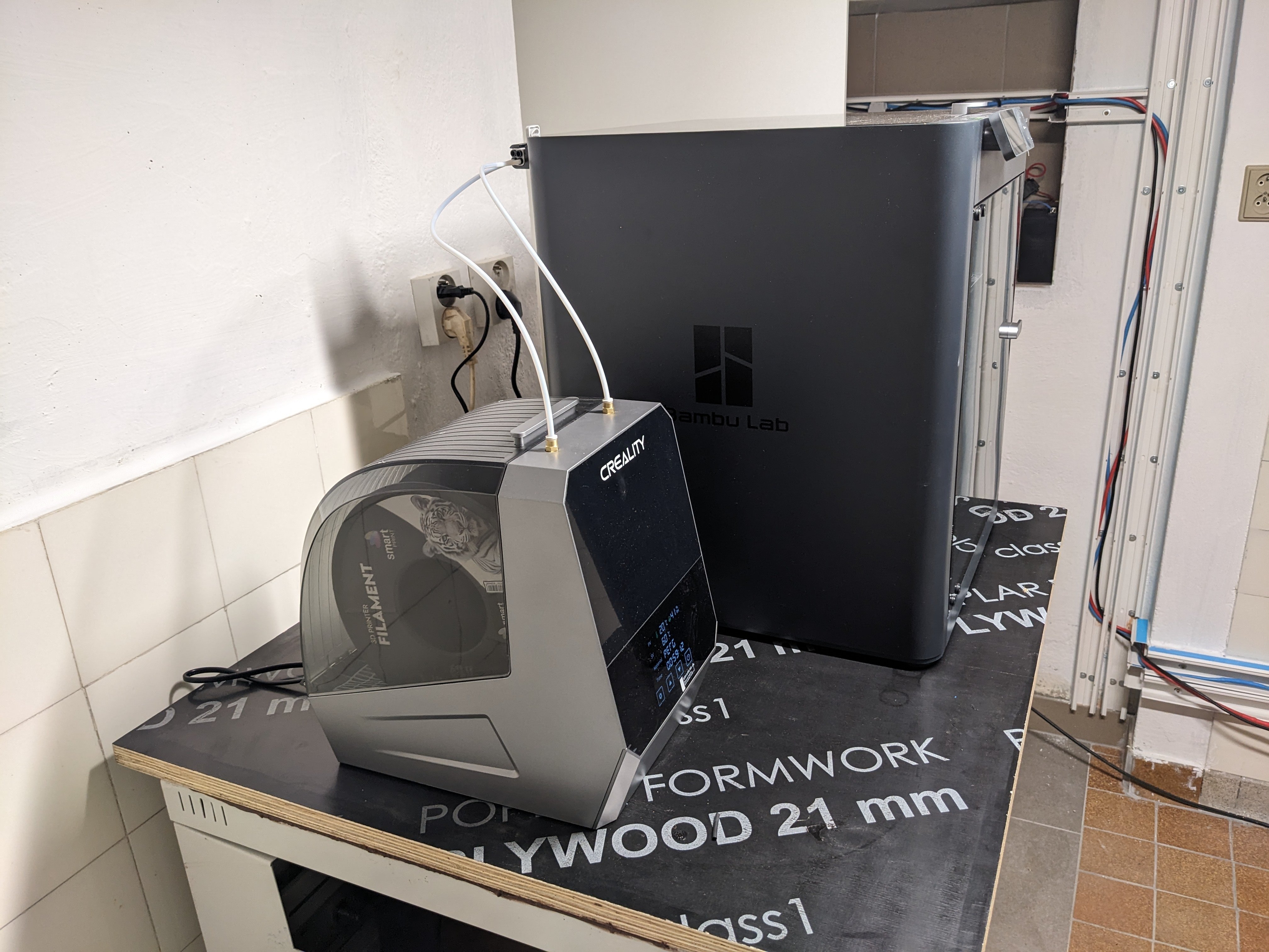 Filamenty mají být skladovány v suchu. Se silikagelem, optimálně takovým, který mění barvu podle vhkosti. Po jeho regeneraci v mikrovlnce se v boxech takto změnila vlhkost: