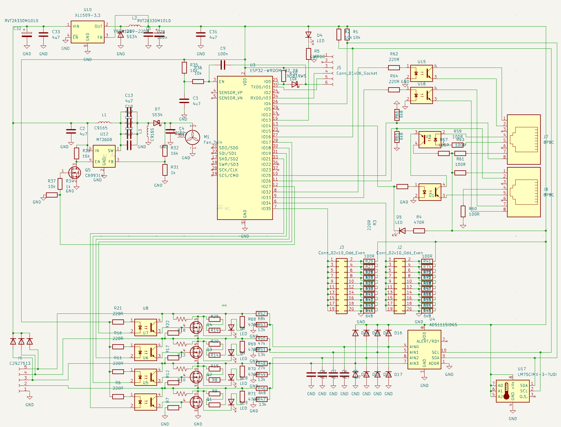 Co se týká toho konektoru J6 (ten s těma 4 optočlenama) tam jsem nepočítal s komunikací s vedlejší deskou, ale spíše kdyby to měla být komunikace do centrální desky a žádný odpor jsem tam nevolil nebo jsem sám nevěděl jaké napětí tam bude, nicméně je pravda že méně jak 5V tam asi plánovat nebudu a ty odpory tam přidám.