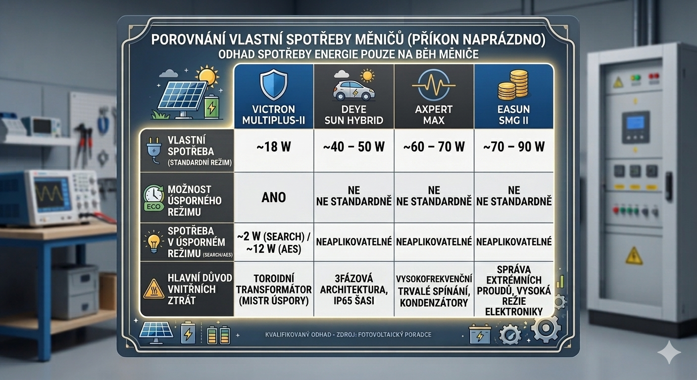 Ale taky pěkně kecá v té vlastní spotřebě,alias účinnosti.A rozdíl třeba v kondících Victron a zbytek pole také nebude násobná.
