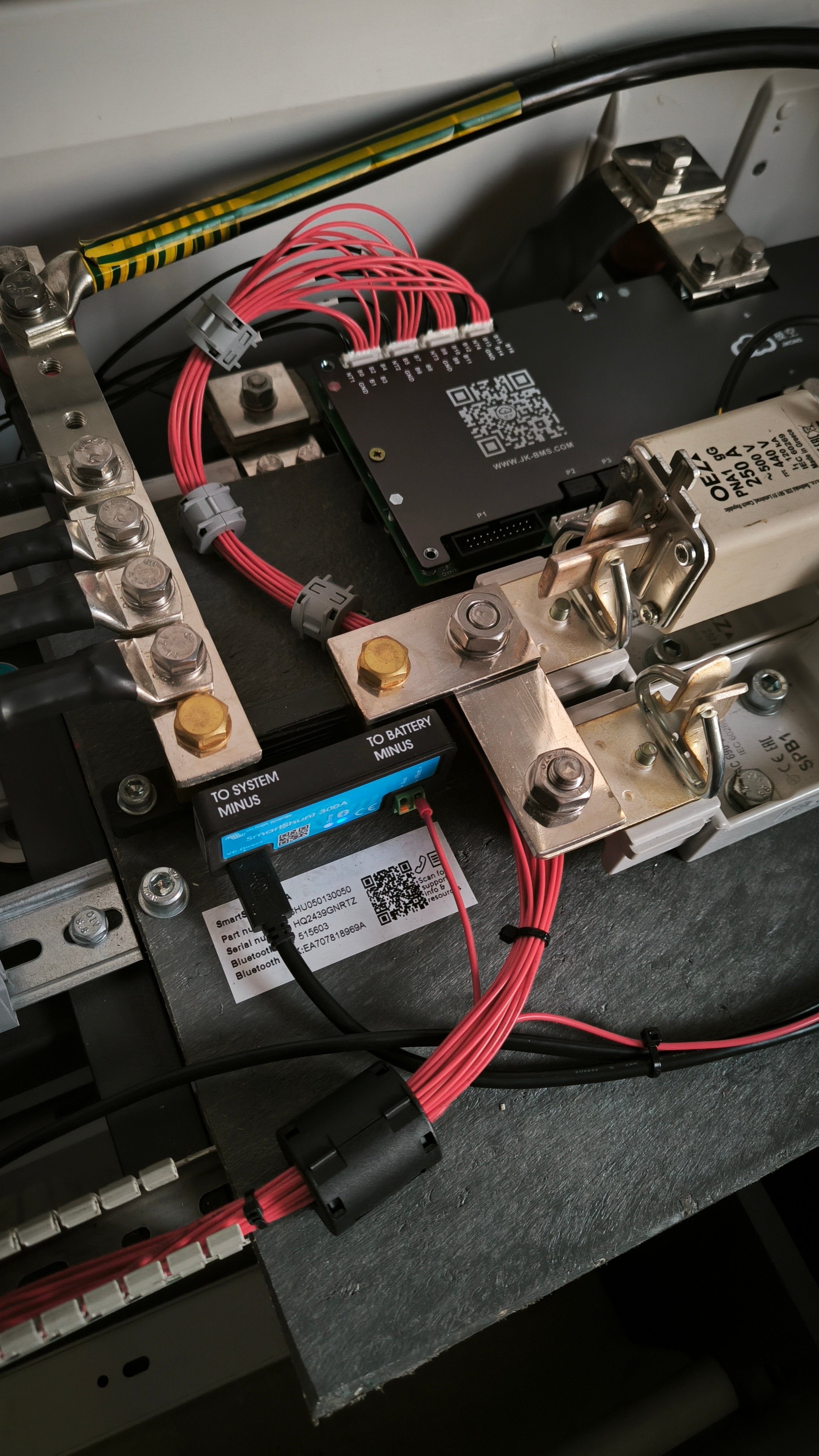 1: JZ 5460 Wp Ja Solar, JV 960 Wp Leapton, SV 1920 Wp Leapton, MPPT 250/100, MPPT 150/35, MPPT 150/45, 2x parallel Multiplus 2 5000VA, Cerbo GX + touch LCD, 2x 16 x EVE 332Ah LiFePO4 + JK BMS 200A + SmartShunt 500A