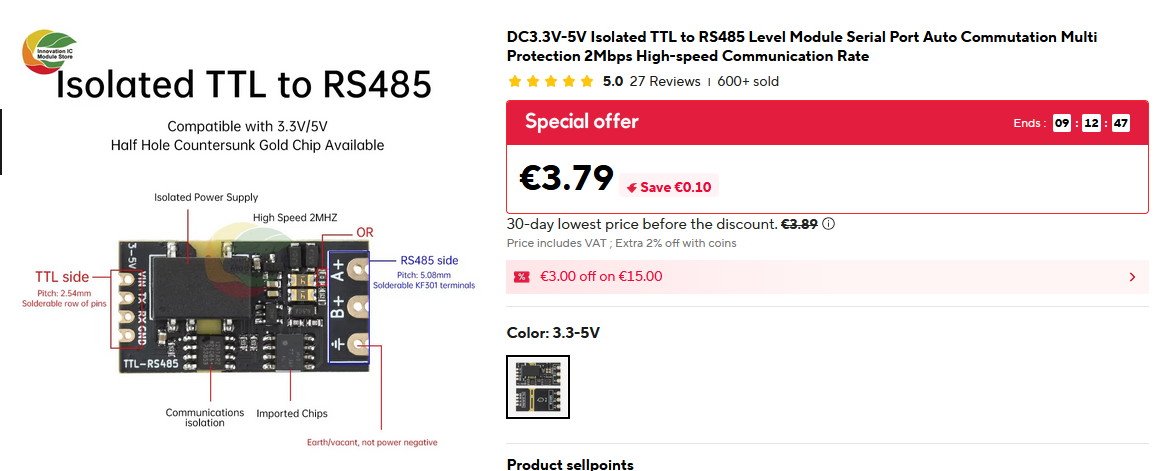 Parádny izolovaný RS485 - UART adaptér! https://www.aliexpress.com/item/1005009069282504.html
