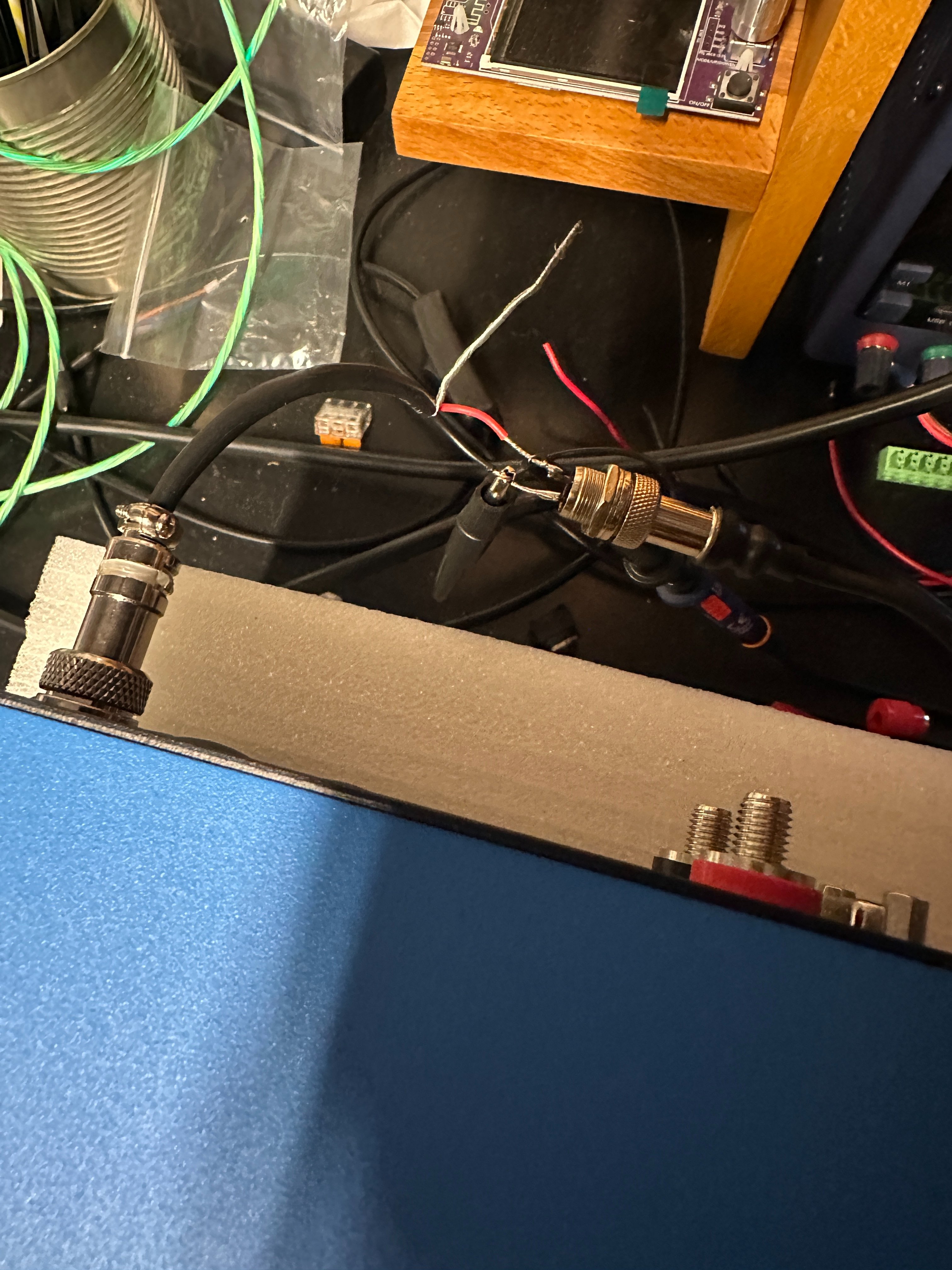 Všechny spoje rozebrat, žádné zásuvky ale ty dva drátky pěkně zaletovat, zaizolovat smrtovačkou a převléknout punčoškou proti rušení, někde to najdeš na té trase - jeden z těch spojů dělá problém a způsobuje to zobrazení +/-235W