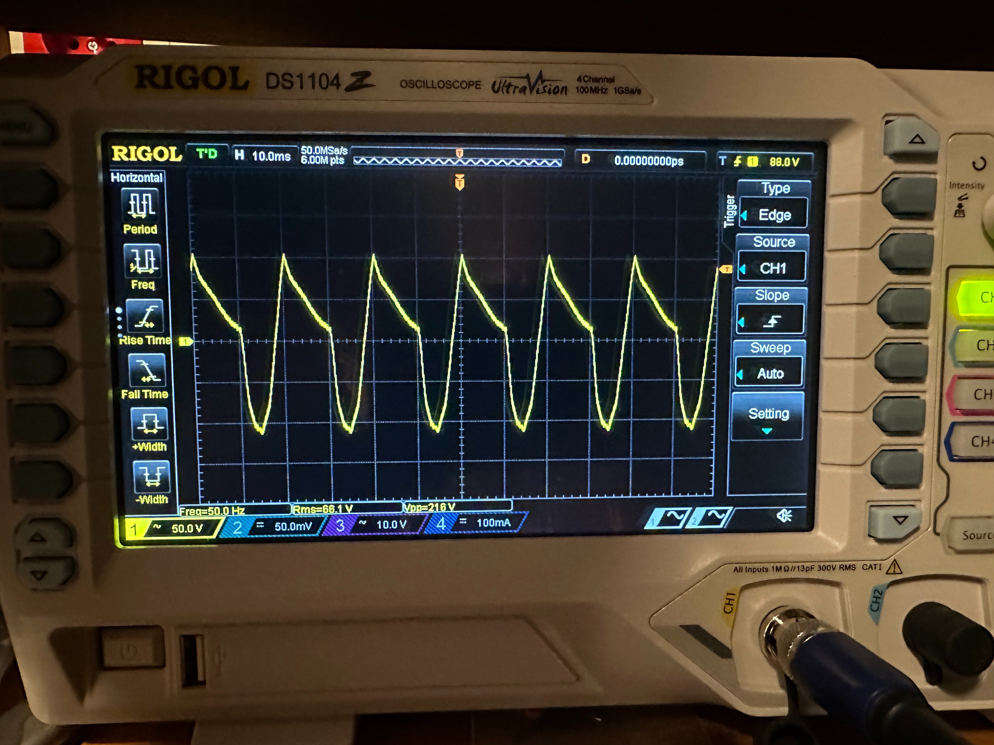 Ano, samozrejme meranie striedaveho prudu ACI a rozsah mA, aj to na tom rigole tak svieti. Kable v zdierkach na meranie mA a zapojene som to mal do serie na zapornej vetve ktora ide z CT na ciernom kabliku na vstupe do menica. Ten rigol je urcite o niekolko radov presnejsi v merani ako ten cinsky menic. Pri hentom konkretnom merani prudu ma presnost 0.15%+1200dig. Zajtra s nim skusim zmerat aj napatie, to sa pripaja paralelne na CT vstup menica, uvidim ako ho ovplyvni v porovnani z osciloskopom. Ci to nebude mat suvis nejako s tou zemou lebo oba pristroje su pri merani zapojene do uzemnenej el. zasuvky. Pripojim tam aj obycajny multimeter co je na baterky a uvidim.