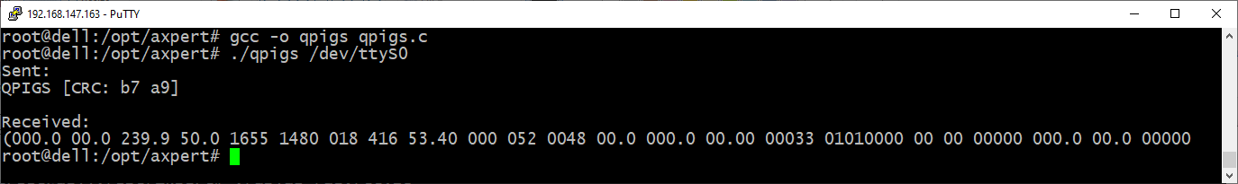 Alternativně porovnat jestli nepomůže https://github.com/syssi/esphome-pipsolar, popřípadě popis komunikace na https://forums.aeva.asn.au/uploads/293/ ... pgrade.pdf