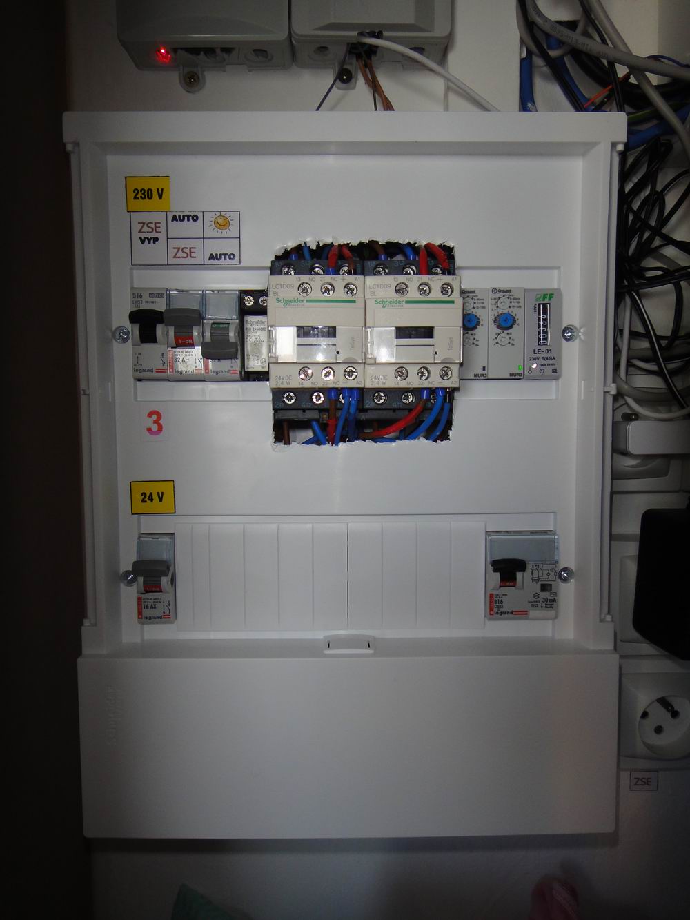 Doplnil som do rozvodu prúdový chránič a tiež vypínač, ktorým môžem odpojiť napájanie 24V do skrinky.