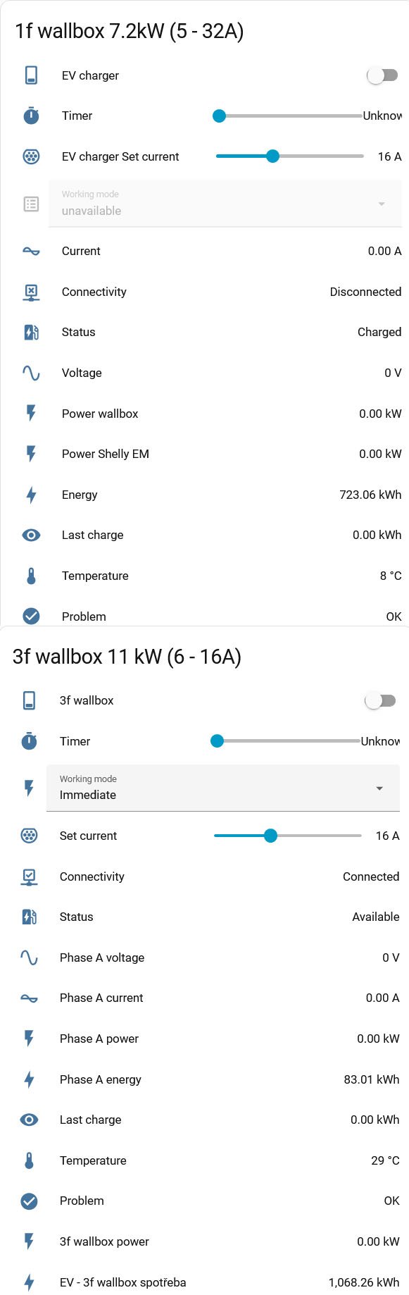 Ja mam nejaku feyree v tuya local, ale prepinanie 1f 3f riesim fyzicky pripojenim/odpojenim redukcie na 220V zasuvku pretoze nabijacka to sama nevie. Budem ju ale tak ci tak nahradzovat, asi za SmartEVSE, lebo su s nou problemy (ked ide naplno na 16A, nejde znizit prud, padne do chyby overcurrent a navzdy v nej zostane, nez jej nezhodim napajanie).