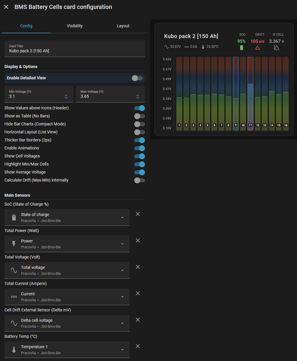 U toho "BMS Battery Cells Card" se mi právě moc líbí, že nic v tom (pro mne) šíleném YAML nastavovat nemusím a vše naklikám ve visual editoru