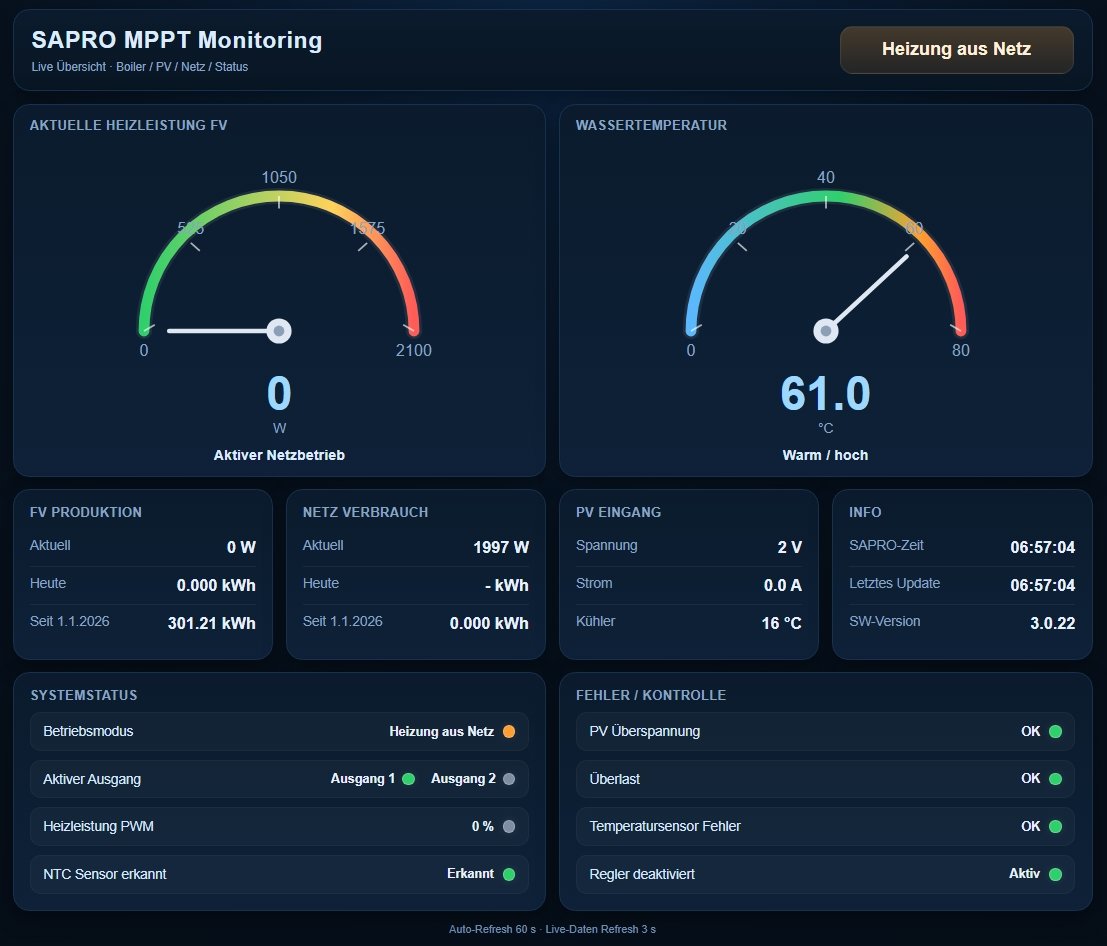 U toho Sapra je to specifikum, že si dělá svůj vlastní web přímo a jak není aktivní - přestane do něj ta data posílat - zdá se že to nepůjde jinak, než automatickou aktualizací té stránky a ta stránka musí někde nepřetržitě běžet. Vyzkoušel jsem už asi 50 způsobů a ta data prostě nejdou ven, poku ten web Sapra přes IP adresu neběží = těžce středověká varianta s pravidelnou aktualizací stránky - ale funguje to - ZATÍM