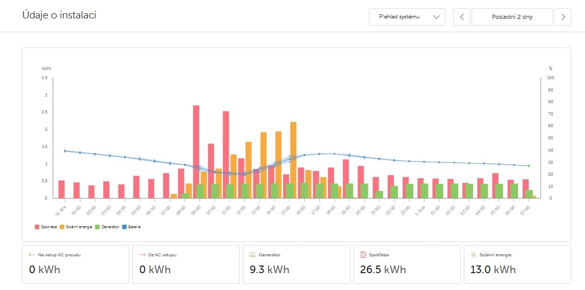Není to efektivní = je to víc ztrátové - ale barák to udrželo přes noc bez problémů - bez výpadku a bez hlášení od Victron