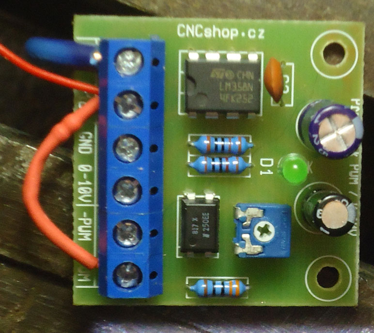 s vlastním zdrojem 12V, PWM->0-10V převodník a PWM signál SDS nastavený na 100Hz.
